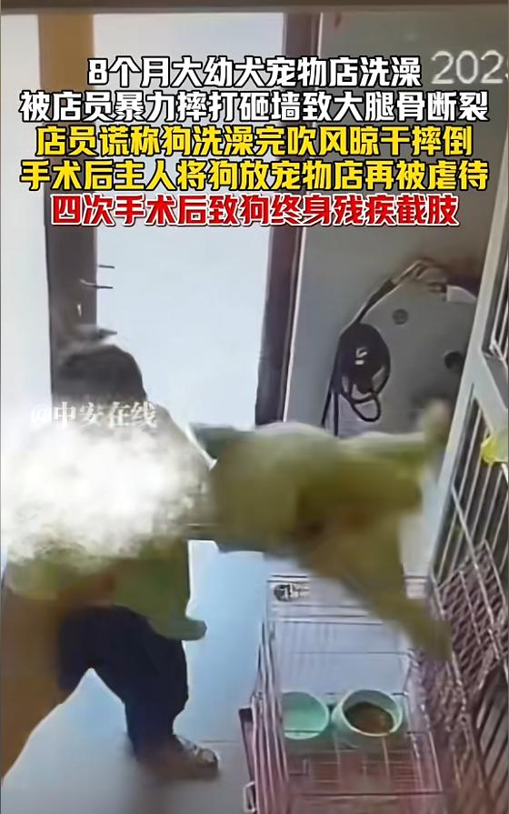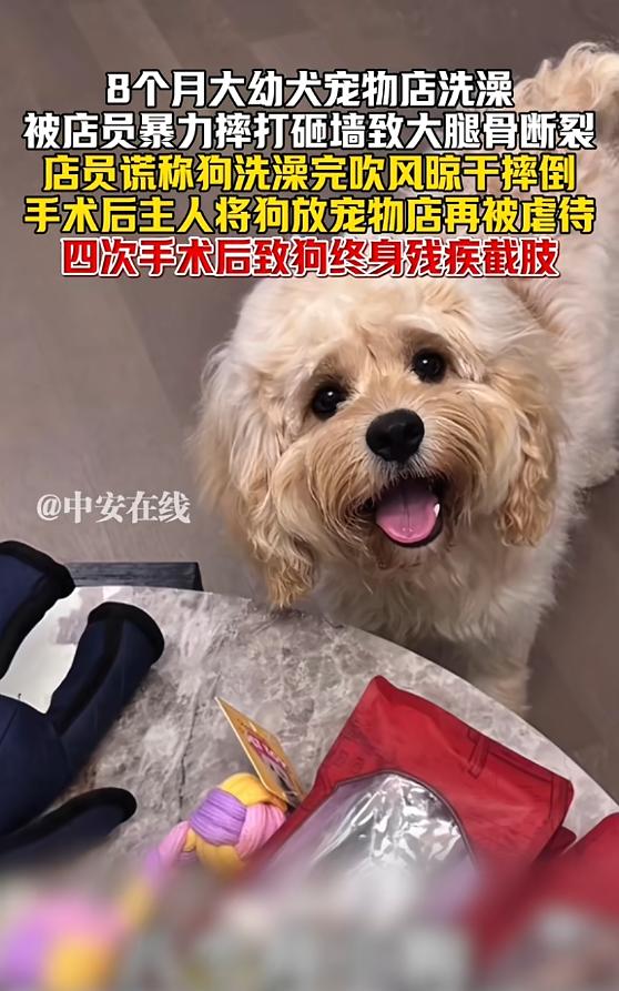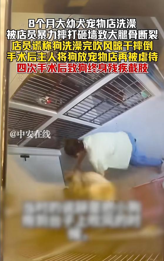“必须严惩!”12月12日,江苏,一女子给狗洗澡时,突然抓起笼子里面的小狗往地上摔,导致小狗的大腿骨断裂,事后谎称是小狗自己摔倒,治疗后主人又将小狗放入宠物店,女子再次对小狗施暴,最终小狗终身残疾。网友:丧心病狂! 事情的起因很简单,小狗主人因为工作忙,没时间给毛孩子洗澡,就像往常一样,把活泼可爱的小狗送到了家附近的宠物店,满心信任地以为能得到专业照顾,等忙完再去接一个香喷喷、干干净净的小家伙回家,可她万万没想到,自己亲手把小狗送进了 “魔窟”。 监控镜头记录下了所有不堪的画面,也戳穿了店员的谎言,在确认主人走远、店里没有其他人后,那个负责给小狗洗澡的女店员,突然露出了狰狞的面目。她没有像正常操作那样温柔对待小狗,反而猛地冲到笼子前,一把抓起这只毫无反抗能力的小家伙,狠狠地往地上摔去。 那力道大得惊人,根本不是什么操作失误,分明就是蓄意伤害,小狗柔软的身体重重撞击在地面和墙壁上,当场就惨叫一声,大腿骨直接断裂。 更让人愤怒的是,施暴后店员异常冷静,还提前编好了谎言,当心急如焚的主人赶回来时,她面不改色地说,是小狗洗完澡吹干时,自己不小心从美容台上摔下来的。主人当时满脑子都是救狗,根本没怀疑这个听起来合情合理的借口,甚至没来得及责怪店员,就火急火燎地带着小狗去医院治疗,第一次的侥幸逃脱不仅没让店员收敛,反而让她的恶念越发膨胀。 小狗经历了痛苦的手术,本以为能慢慢康复,可因为还需要后续的清洁护理,不明真相的主人又把它带回了这家 “黑店”,这一次店员看到小狗再次落到自己手里,而且上次的谎言没被拆穿,胆子彻底大了起来,竟然故技重施,在小狗刚做完手术、身体还极其脆弱的时候,再次对它施加了暴力。 连续两次 “意外”,让主人终于起了疑心:“怎么每次来这家店都出事?” 那种不对劲的感觉越来越强烈,任凭店员再用各种借口搪塞,主人这次没有再软弱,坚决要求调看店内的监控录像。 当监控画面一点点播放出来时,所有的谎言瞬间崩塌,主人站在屏幕前气得全身发抖,眼泪止不住地往下掉,视频里自己视若珍宝的小狗被狠狠摔打,发出无助又痛苦的呻吟,每一帧画面都像尖刀一样扎在心上,这哪里是什么意外,分明就是熟练又残忍的蓄意伤害。 为了保住小狗的性命,主人带着它前后做了四次手术,可最终还是没能保住那条受伤的腿,小狗只能面临终身残疾的命运,曾经活蹦乱跳、喜欢围着主人撒娇的小家伙,从此只能拖着残缺的身体生活,想想都让人心疼。 这件事曝光后,网友们的愤怒彻底爆发了,大家纷纷指责这名店员丧心病狂,没有一点爱心和良知,宠物服务行业本应是基于对生命的尊重,可这个店员不仅辜负了主人的信任,更是对生命的亵渎,有人质问:“如果内心充满暴戾,根本不喜欢小动物,为什么要从事这个行业?” 还有人猜测,看她施暴的熟练程度,说不定以前也伤害过其他小动物。 这种隐藏在服务业里的 “恶魔”,就是一颗定时炸弹,谁也不知道下一个受害者会是谁,小狗的痛苦无法言说,它的终身残疾,是店员残忍行为留下的永久伤痕,现在大家一致呼吁,必须让这名店员付出应有的代价,不能让她轻飘飘地道歉就完事,要让她为自己的恶行承担责任,也给其他心怀不轨的人敲响警钟。 生命不分大小,每一个小生命都值得被温柔对待,这个店员的行为已经突破了做人的底线,践踏了职业的操守必须严惩,不仅是为了给这只受伤害的小狗讨回公道,更是为了守护更多小动物的安全,不让这种丧心病狂的虐待行为再次发生。 (信息来源:《8个月大幼犬宠物店洗澡,被店员暴力摔打砸墙致大腿骨断裂,店员谎称狗洗澡完吹风晾干摔倒,手术后主人将狗放宠物店再被虐待,四次手术后致狗终身残疾截肢》法治在线)