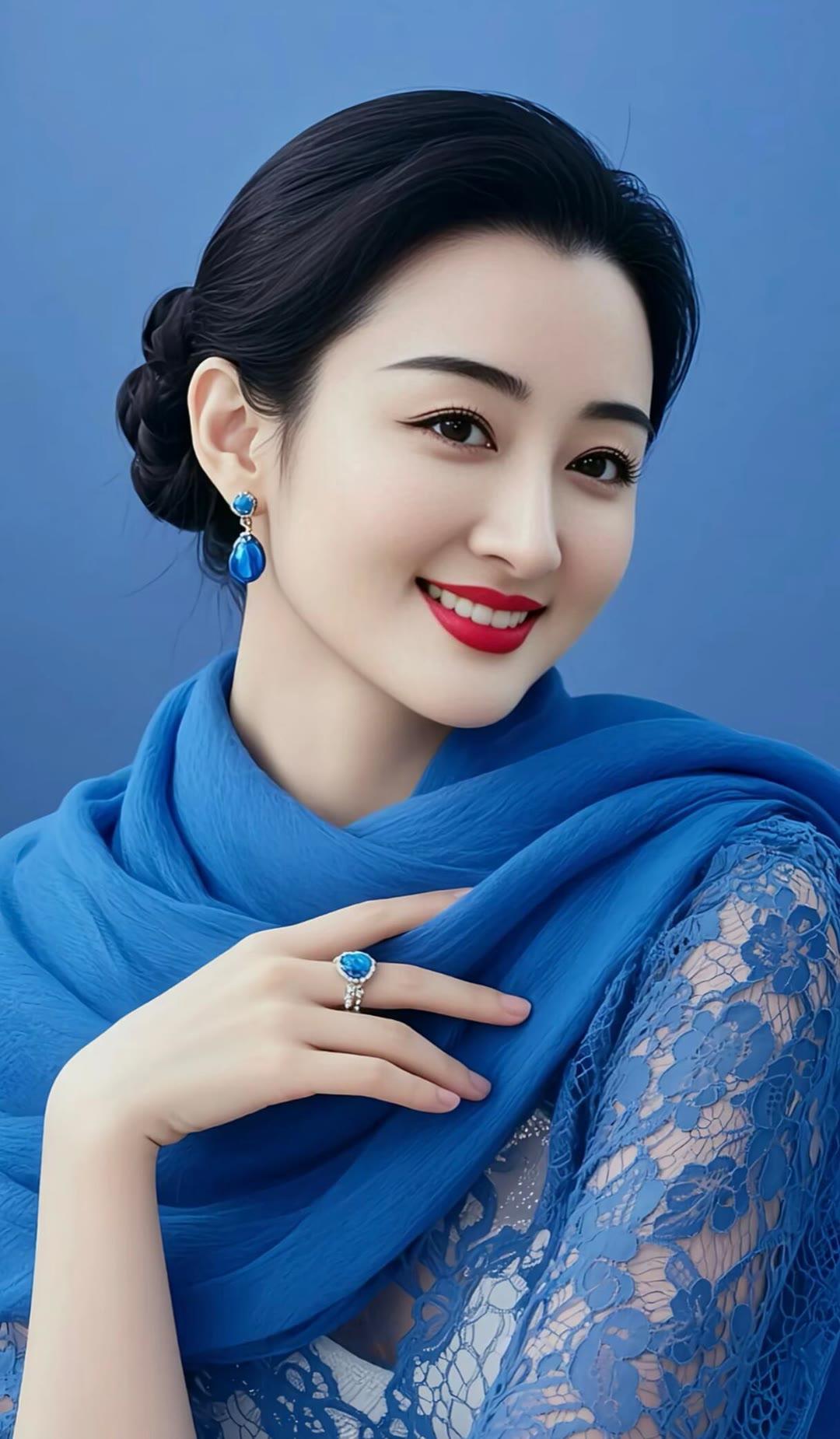 温柔甜美的微笑,红唇与黑发的完美搭配,散发着迷人的魅力。