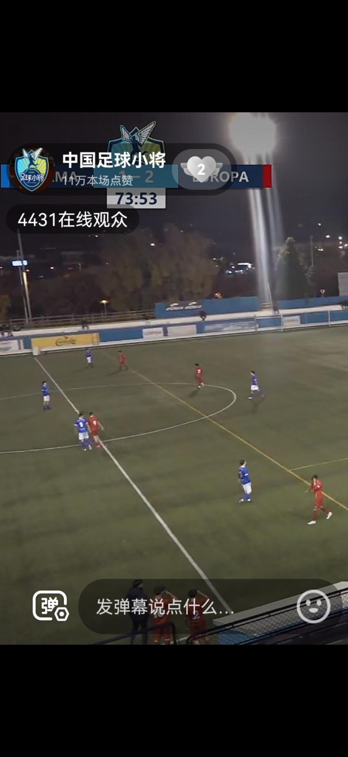 凌晨2点多,4400名观众围观中国足球小将 老二吕孟洋比赛的直播。