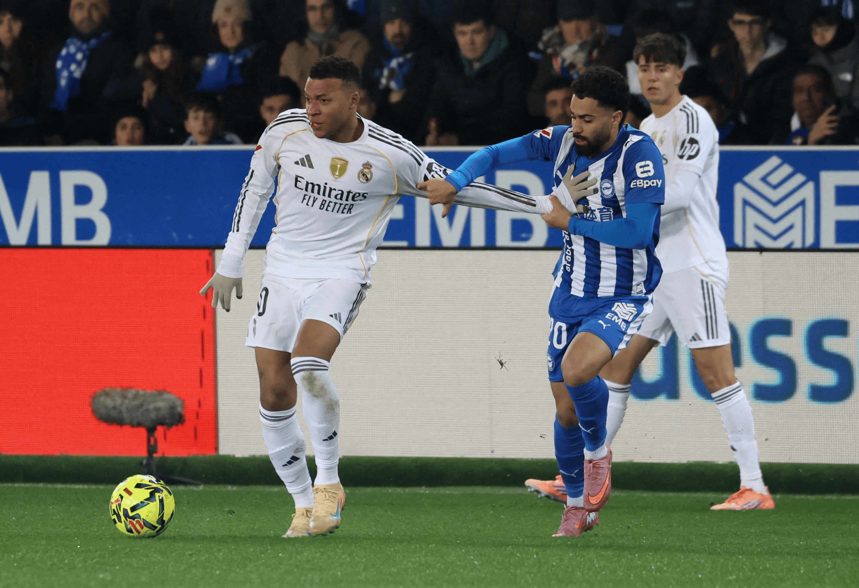 虎扑12月15日讯西甲第16轮,皇家马德里客场挑战阿拉维斯,姆巴佩在上半场首开记录。