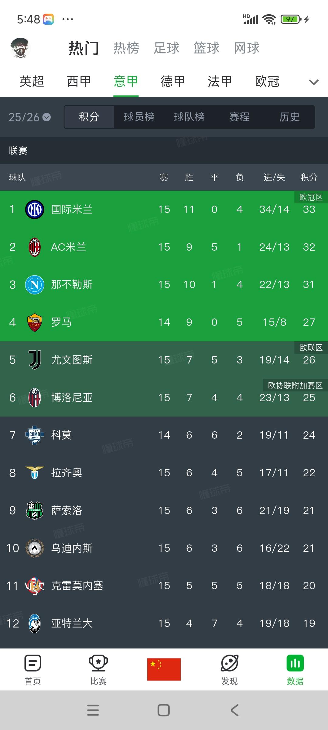 国际米兰再次登顶意甲积分榜! 因为之前领先的本轮都没赢,AC米兰被逼平,那不勒斯被击败。 欧冠输给利物浦,我就说问题不大,国米不要指望欧冠出好成绩,意甲拿冠军最现实。 上赛季双线作战多惨呀,能一个冠军就不错了,何况意甲竞争对手简单点。[可怜]