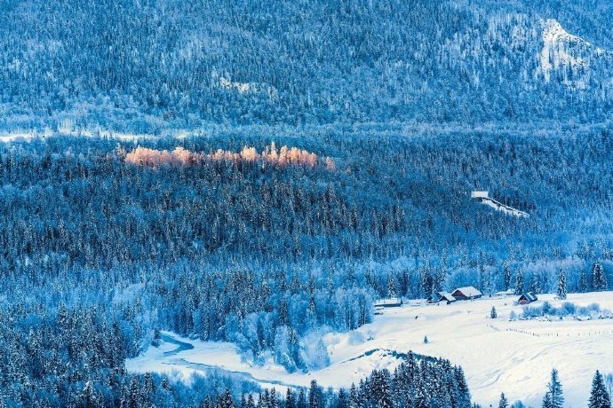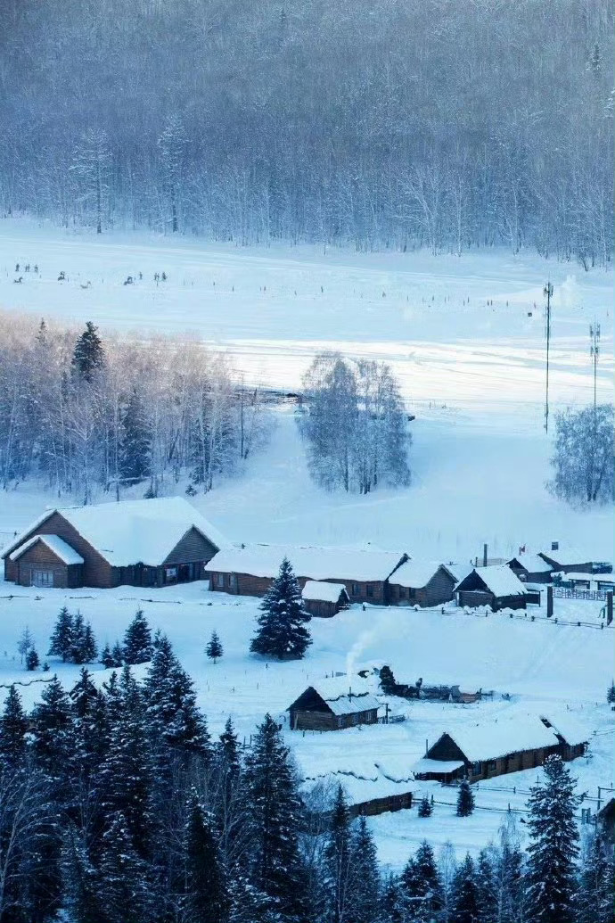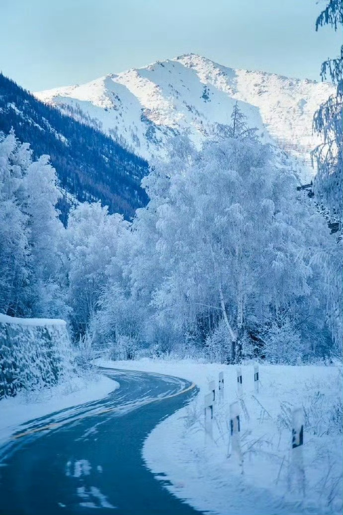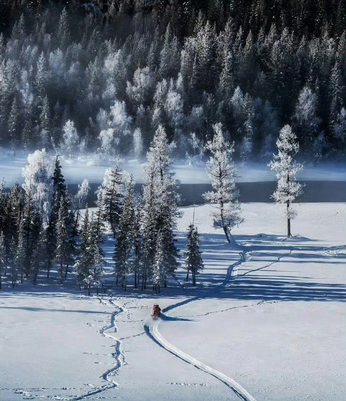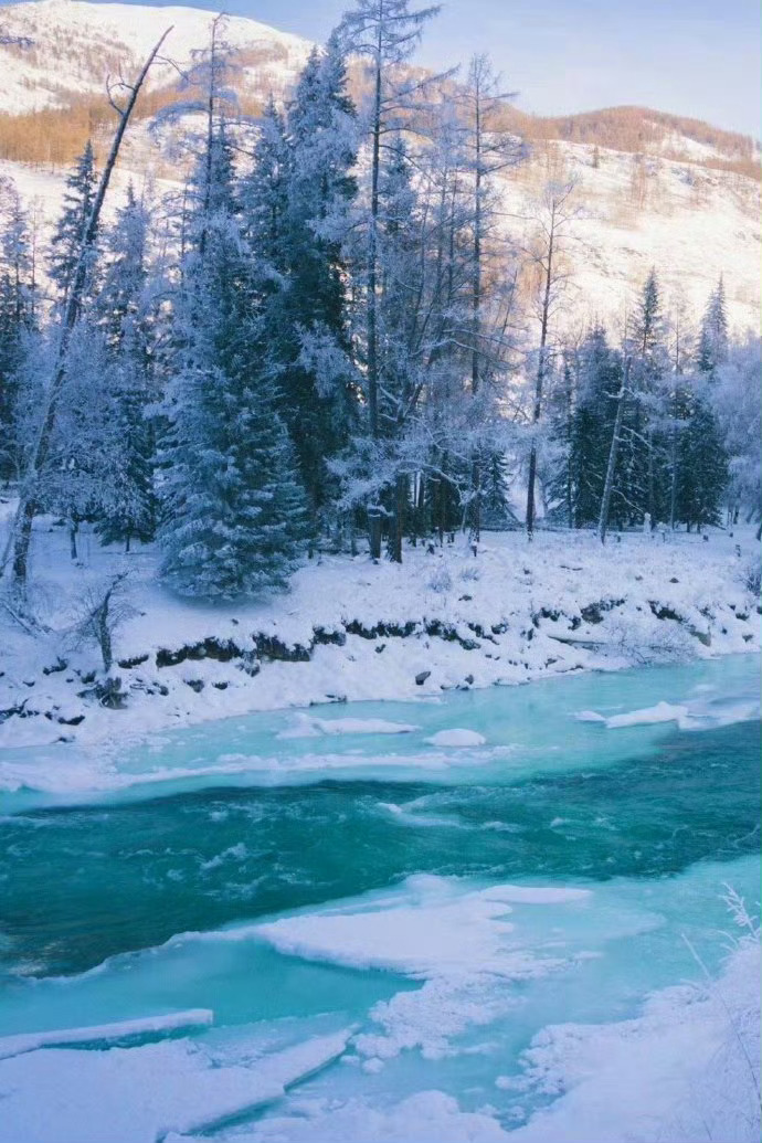 新疆的冬天,白雪覆盖了鲜花、草原、森林,封存了河流、湖泊,白雪将新疆变成了一幅安然宁静的水墨画。