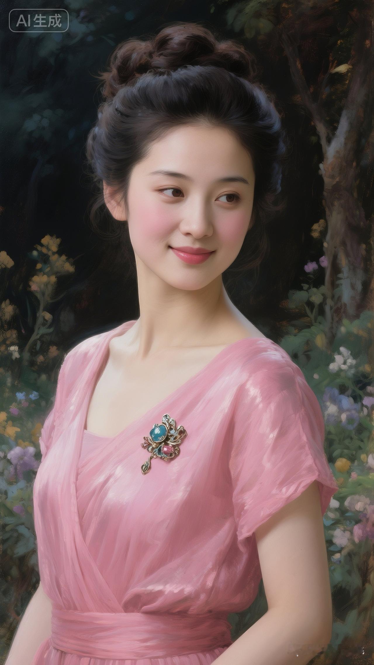 优雅粉裙少女,梦幻花园中的甜美微笑🌸✨