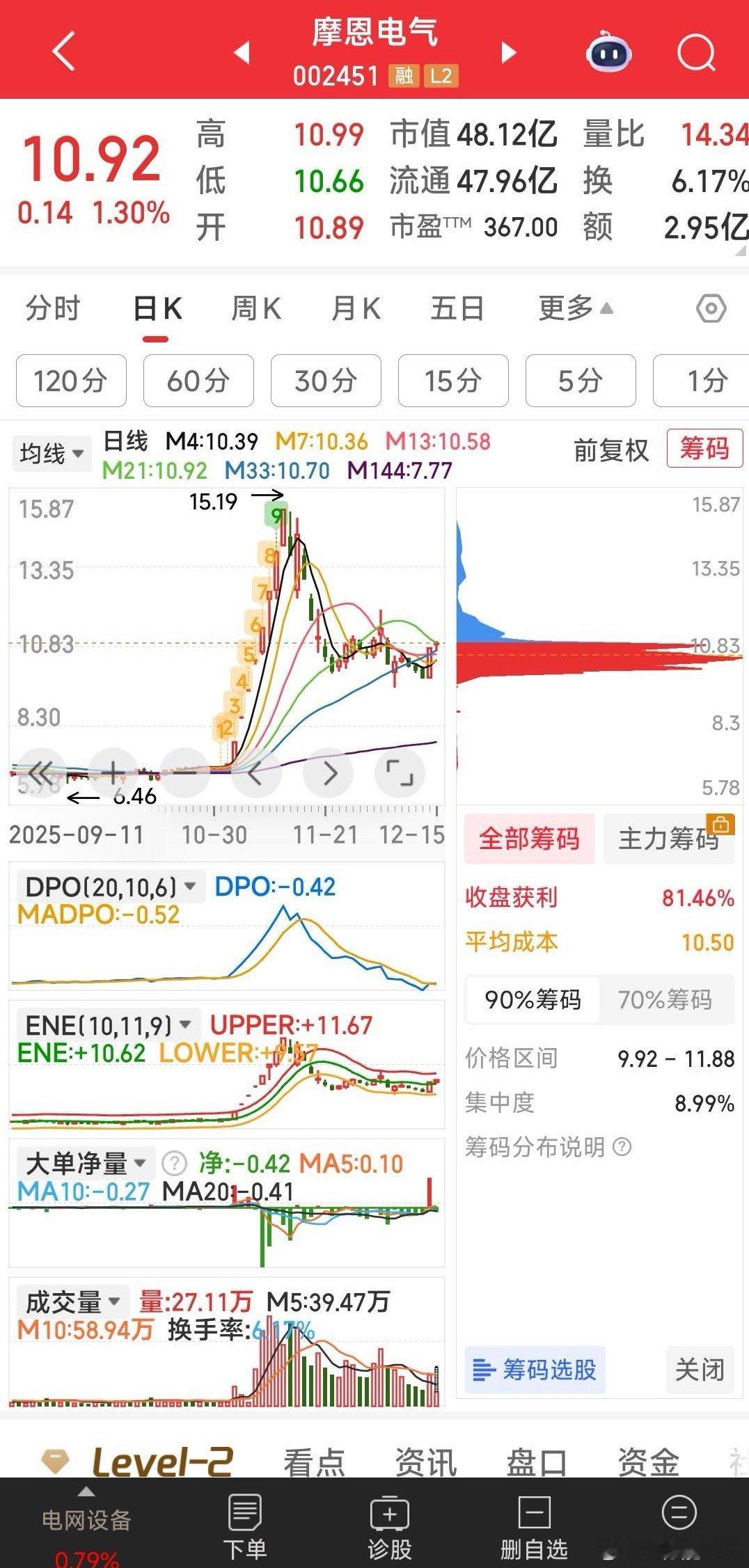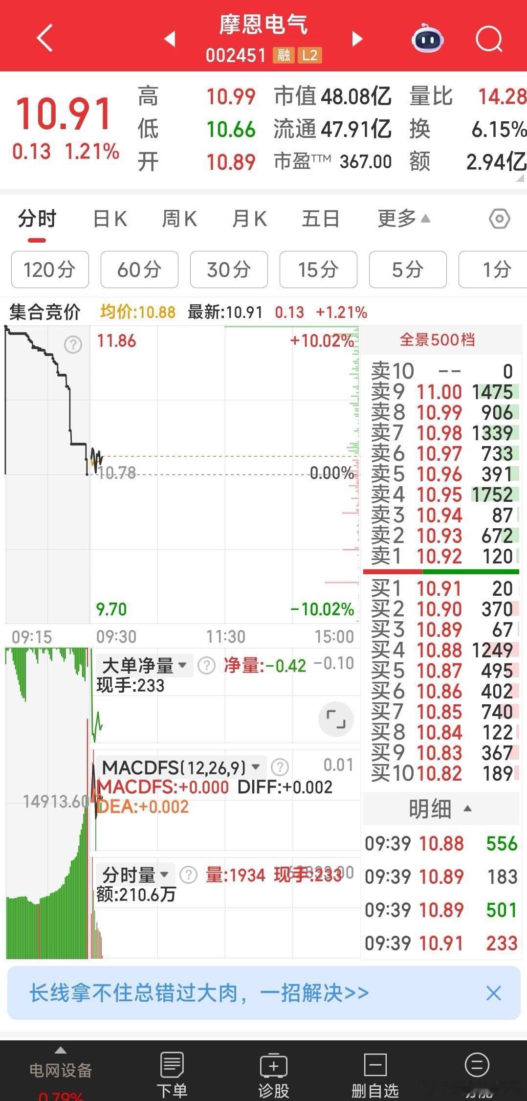 【今日建仓一票】今日建仓一票:10.88元建仓摩恩电气。今天建仓结束了。