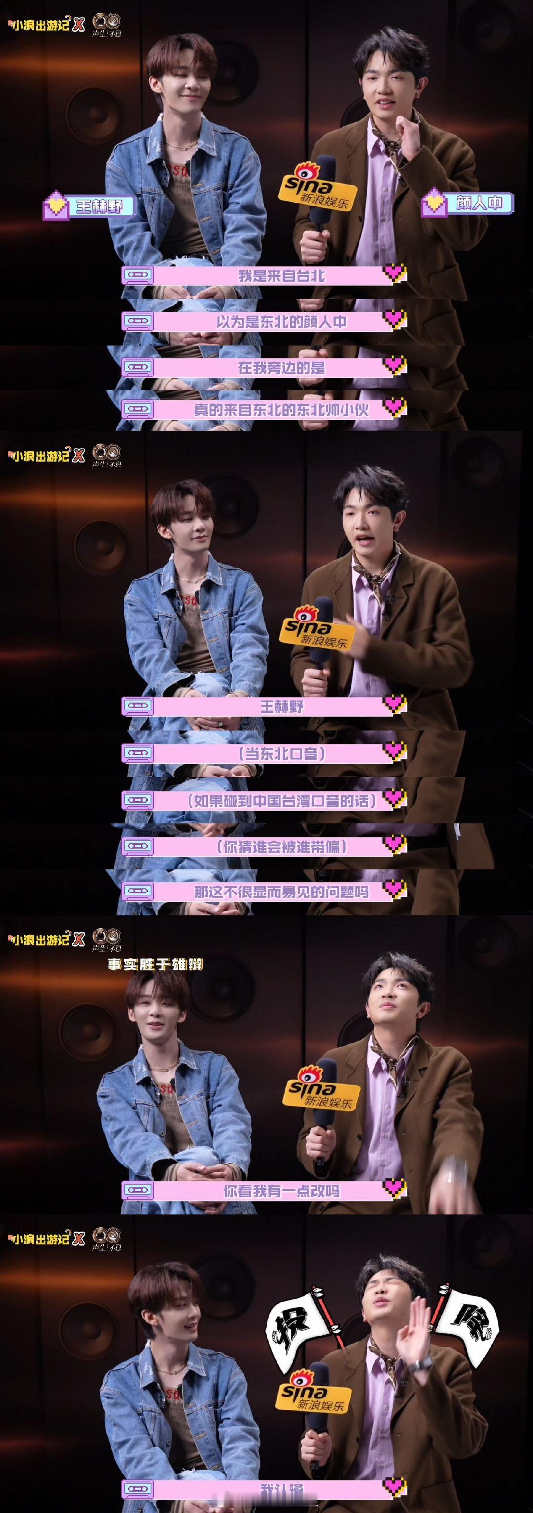 王赫野东北话带偏颜人中颜人中王赫野五岁一代沟 南北歌手同框笑料炸屏!i人颜人中直言王赫野给了自己“熟人般的救赎感”,东北话对上台湾腔秒认输~王赫野嘴硬“我没口音”还喊话汪苏泷“哈尔滨哪有沈阳口音重”,5566、台偶更是戳中他的知识盲区,五岁代沟狠狠认证,正片笑点密集速冲!