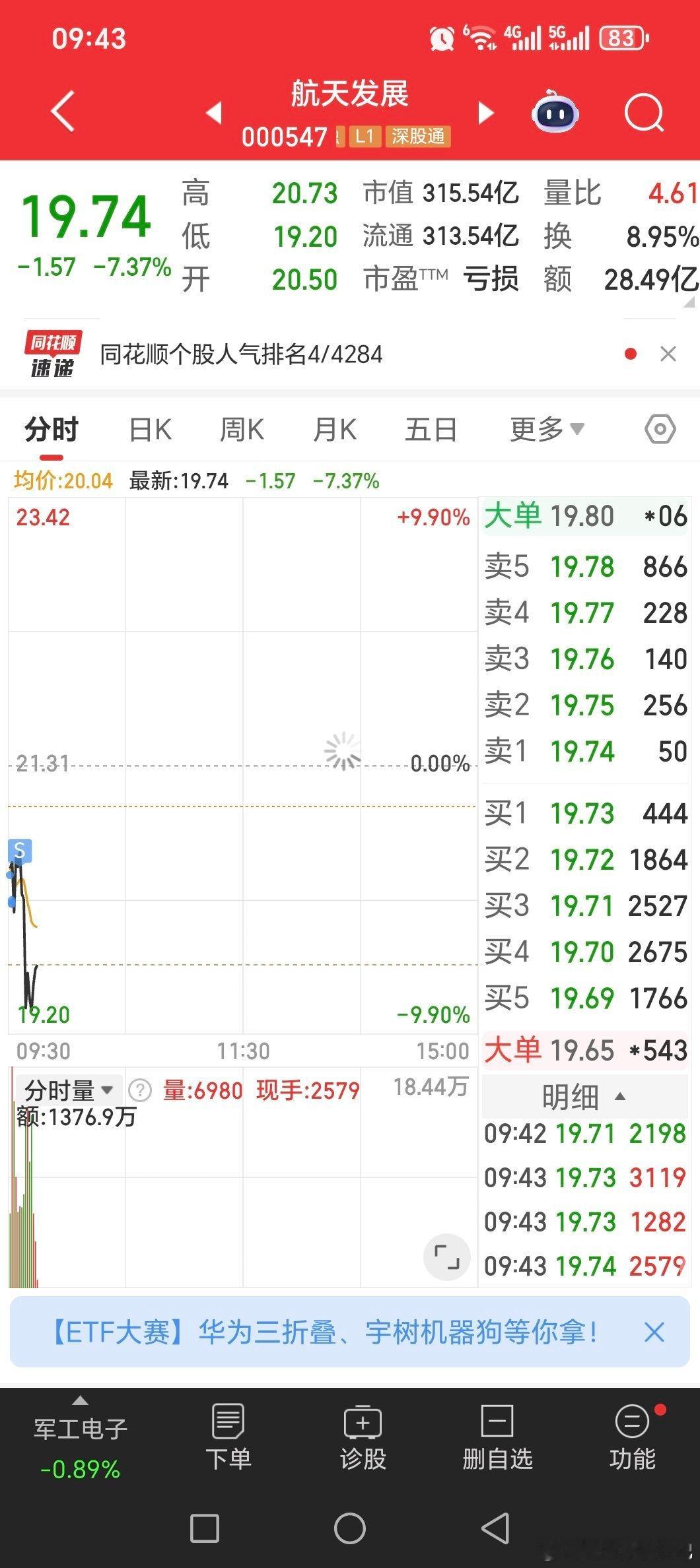航天发展小亏跑路,航天动力小赚跑路,进了龙头!!!!股票关晓彤听分手歌100多遍鹿晗知道吗