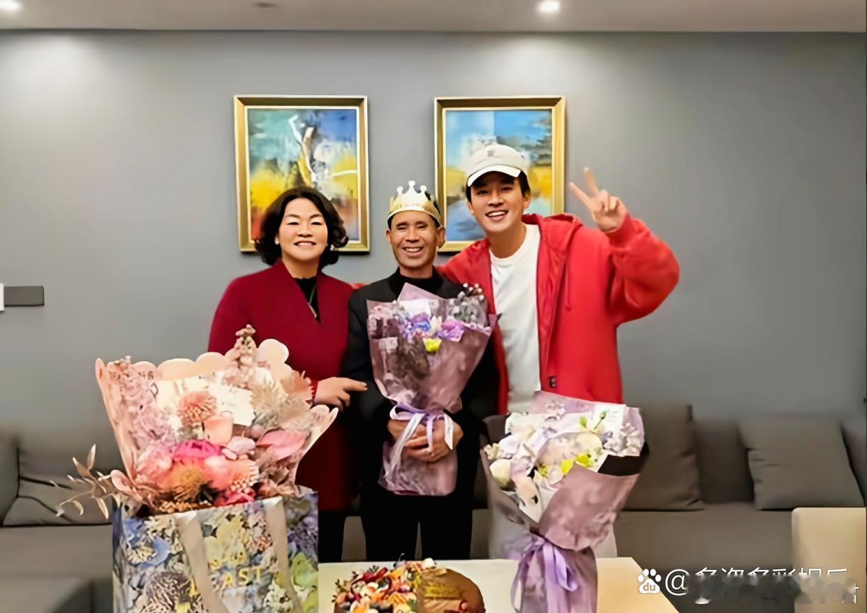 欧豪拍戏期间回家给老爸过生日,他穿着红衣特别显眼,他长得像父亲,但是青出于蓝而胜于蓝!