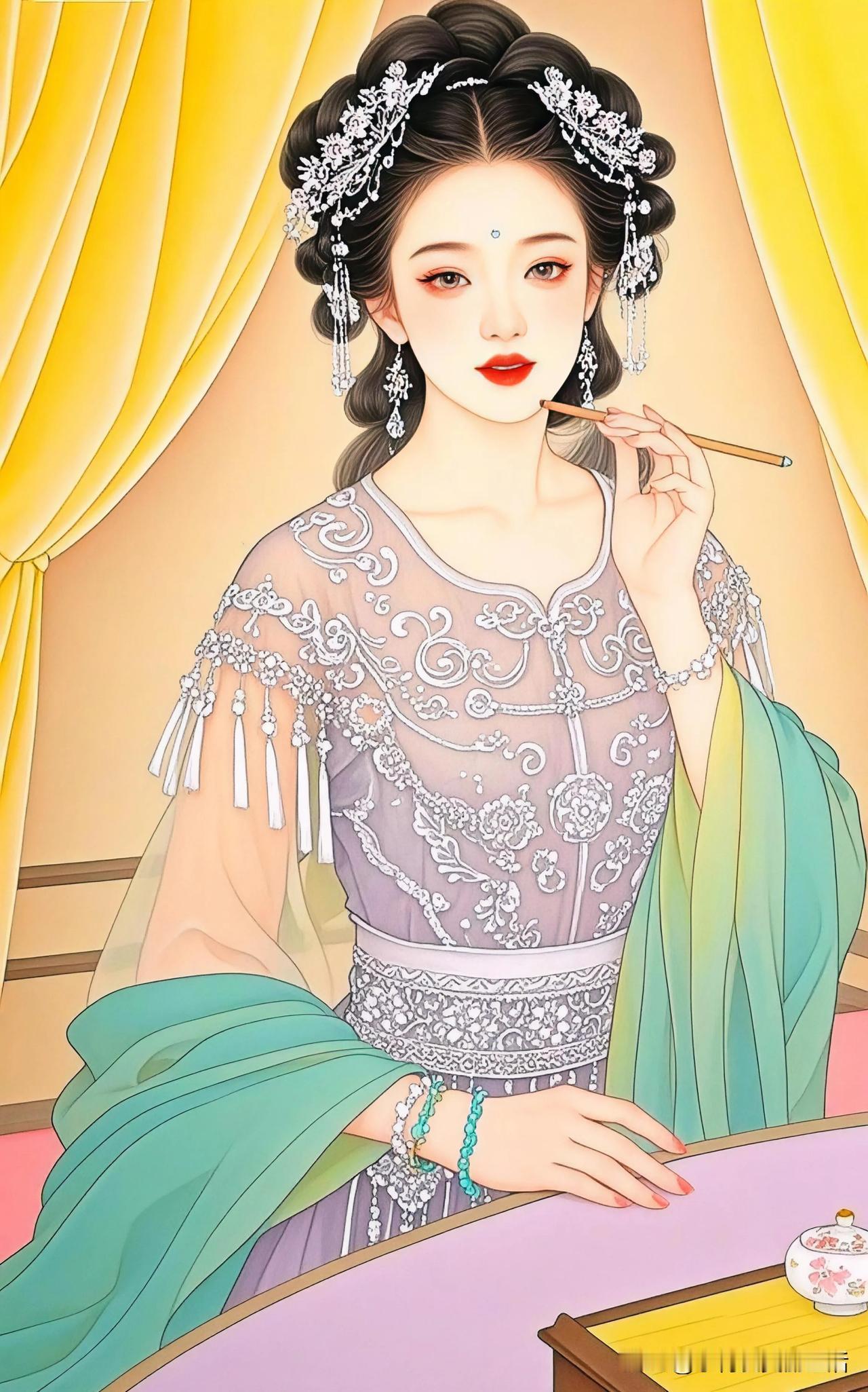 玉人捧书卷,金钗映华堂。 感受国画的意境之美作品分享 临摹画画分享 一句赞美你