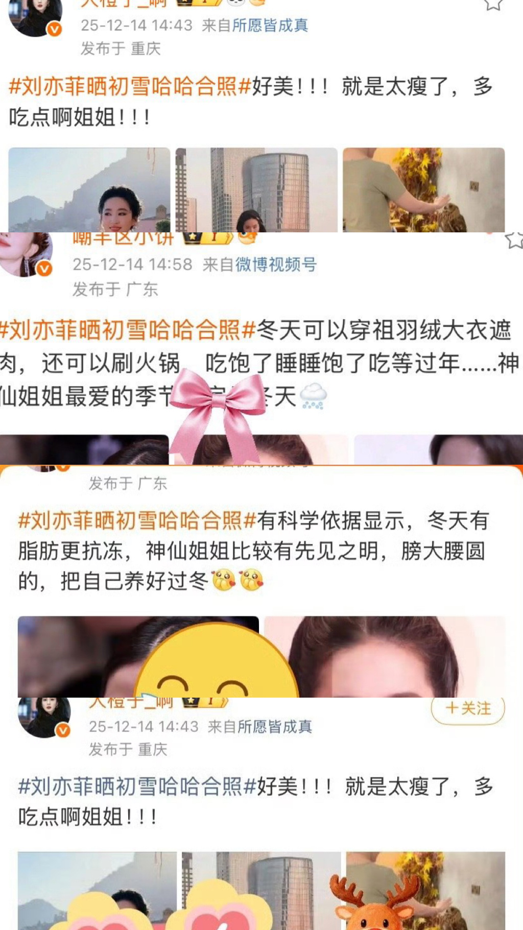 刘亦菲晒初雪哈哈合照刘亦菲这么红么?其他家花粉都要冲她的rs🧱共享……比影视寒冬更寒的原来是粉圈👛寒冬……大粉的海景别墅一砖一瓦全靠窃……这样的劣质粉圈难怪频频暴雷……非法jz顶风作案……少了多少吃回扣的好路子啊……