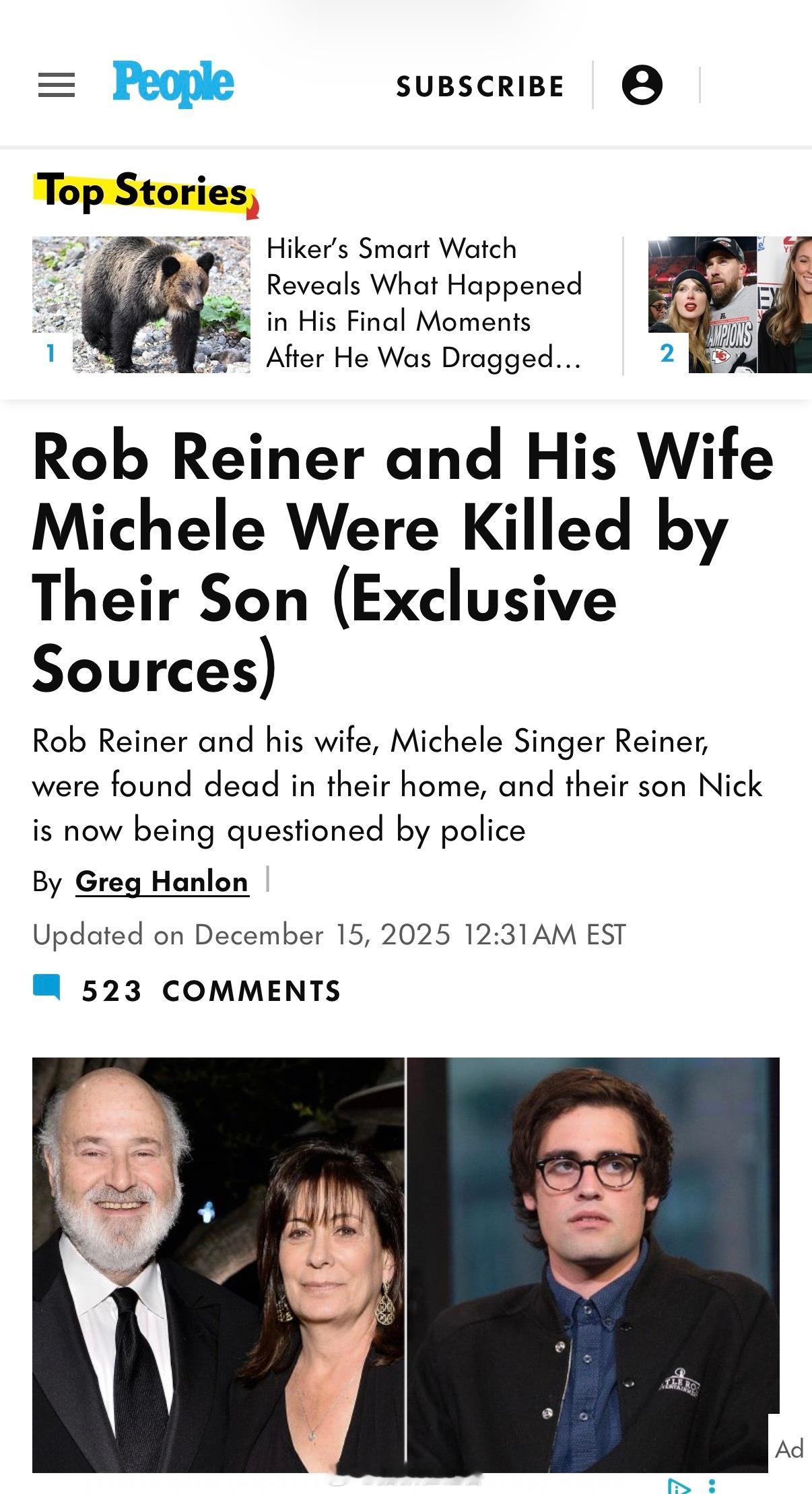 美国导演罗布·莱纳及妻子被儿子杀死美国知名导演、制片人罗布·莱纳(Rob Reiner)及其妻子米歇尔·辛格·莱纳(Michele Singer Reiner)于当地时间12月14日被发现死于其位于洛杉矶的住所。洛杉矶消防局表示,当天下午约3时30分接到医疗救助电话,赶到现场后发现一名78岁男子和一名68岁女子已无生命迹象。多名消息人士证实,死者为罗布·莱纳夫妇。多名消息人士向《PEOPLE》透露,凶手是这对夫妇的儿子尼克·莱纳。警方称,夫妇32岁的儿子尼克·莱纳目前仍在世,正在进行调查。关于案件具体经过及死因,警方仍在调查中,尚未作出官方确认。罗布·莱纳是好莱坞最具影响力的导演之一,职业生涯横跨数十年。其执导和制作的多部影片曾入围并获得包括奥斯卡在内的多项重要奖项提名。他的代表作包括《伴我同行》《公主新娘》《当哈利遇到莎莉……》《危情十日》以及《义海雄风》,其中多部作品被视为美国电影史上的经典。