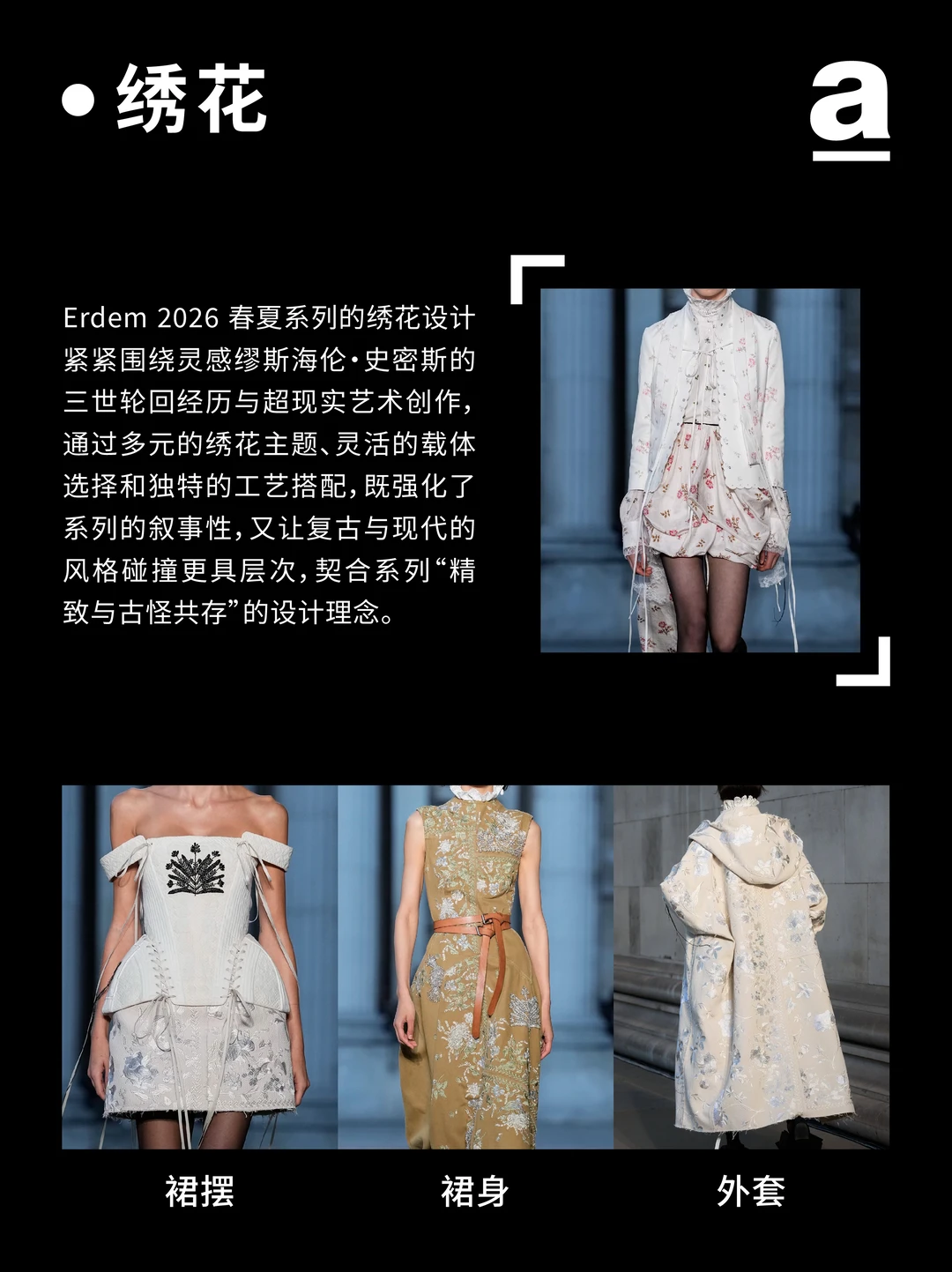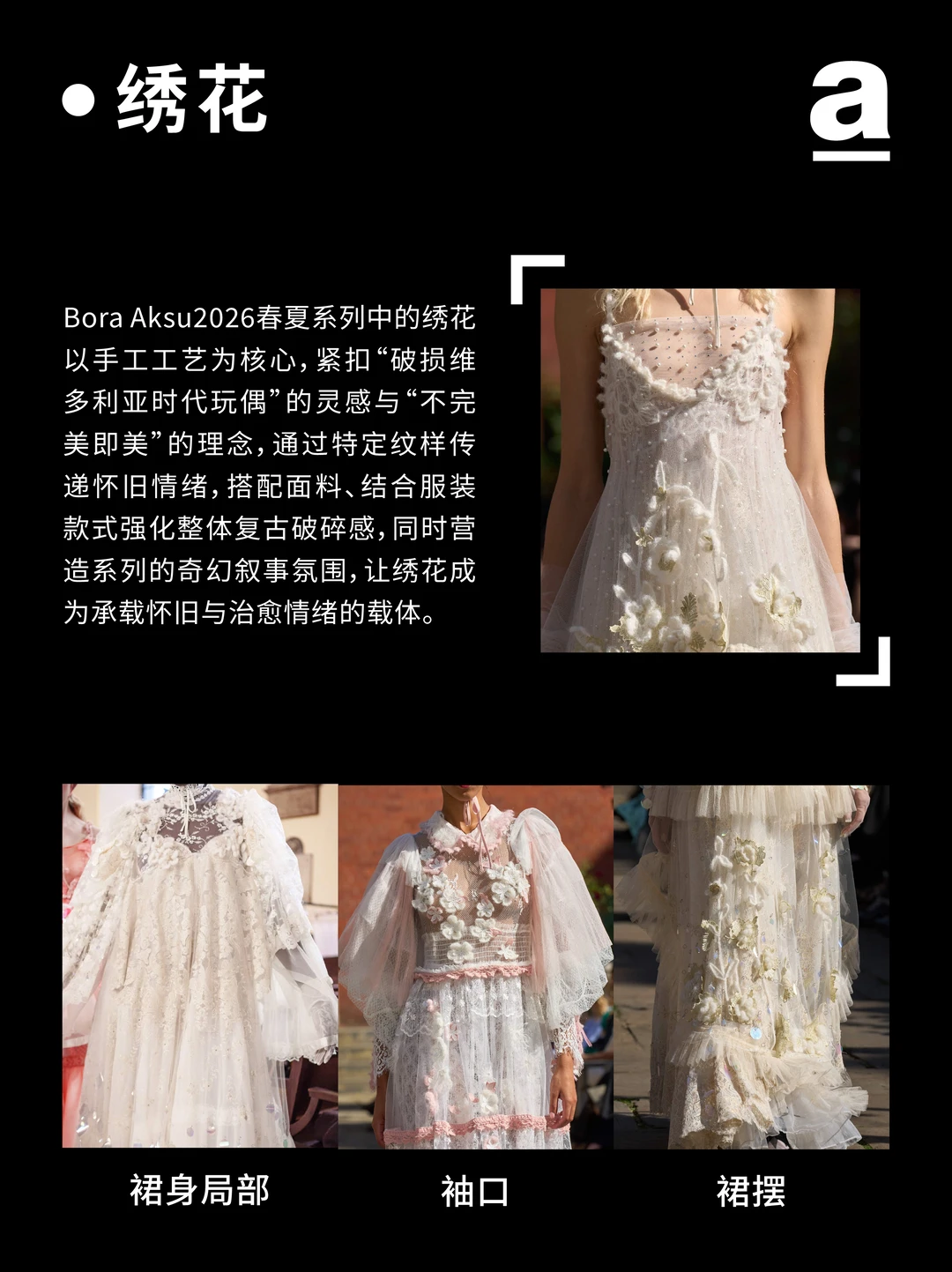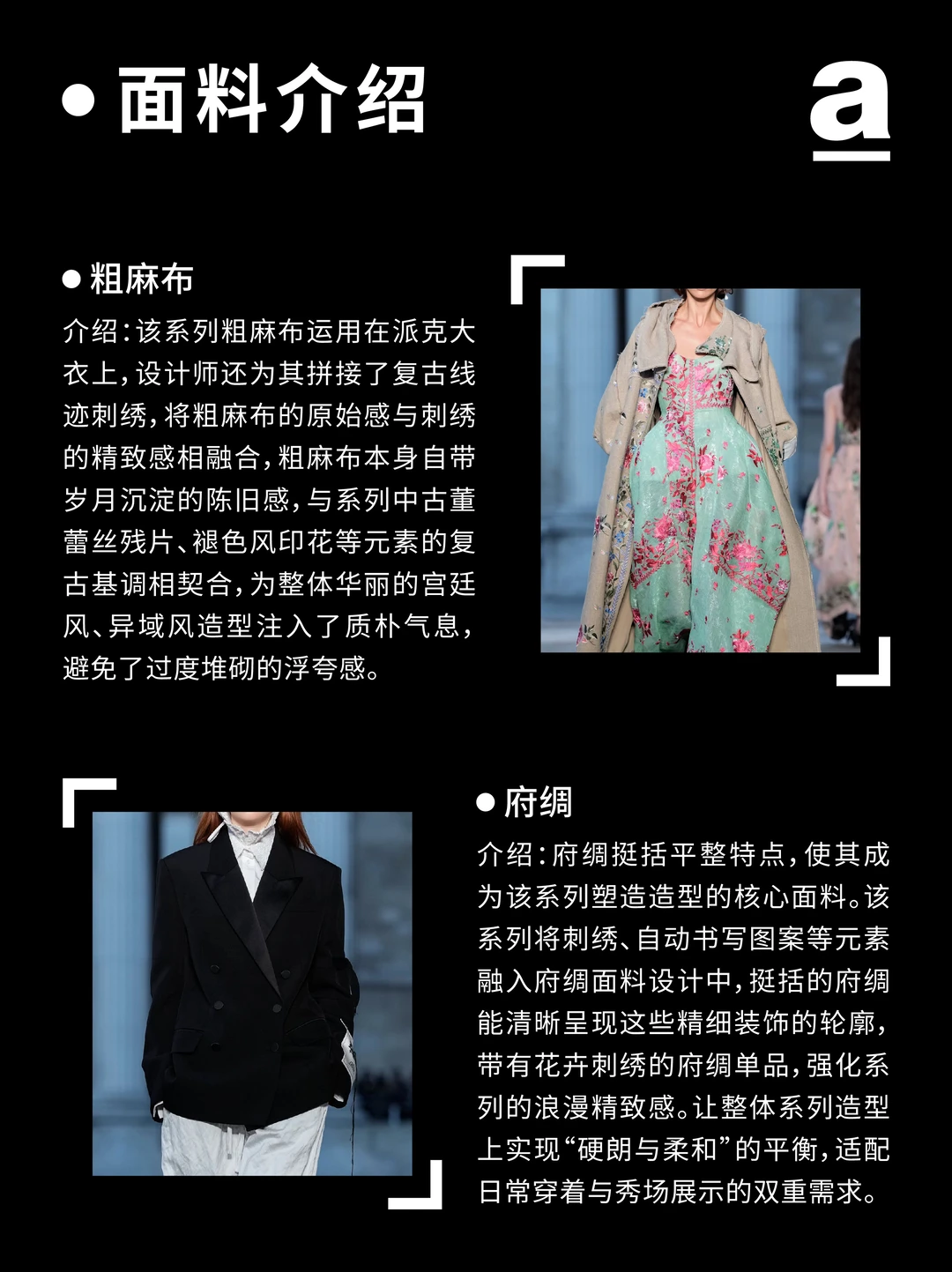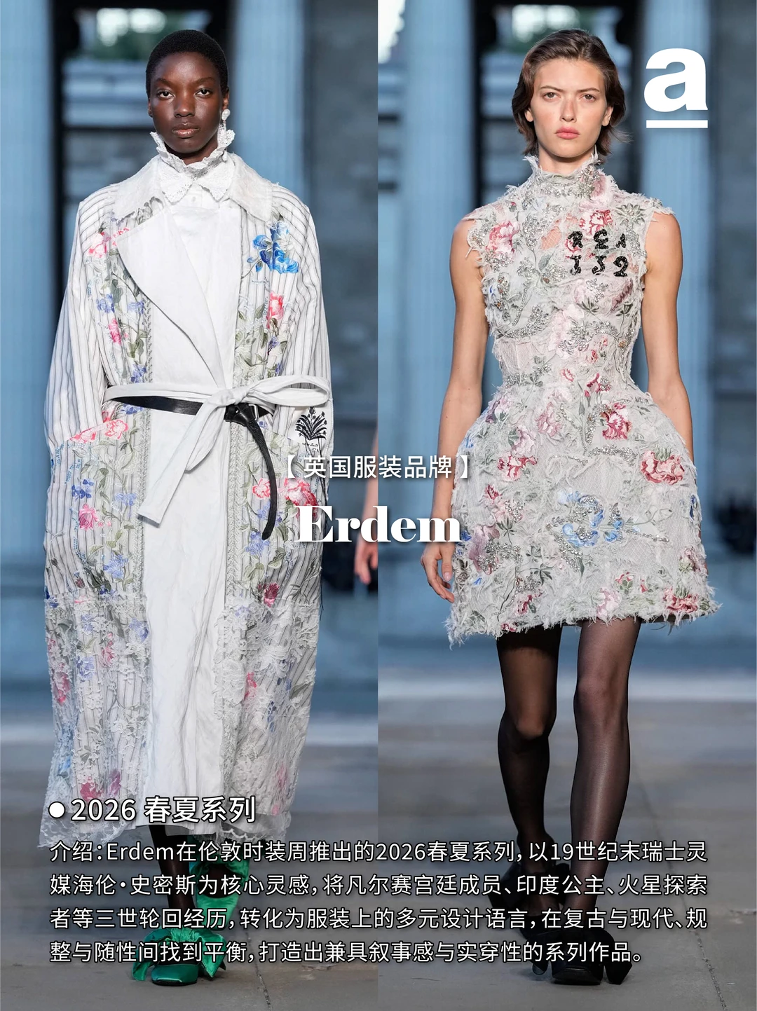 2026春夏高级定制时装周向时尚界宣告对「奢华」的定义正在重构——不再是单纯的材质堆砌,而是通过面料的创新应用、工艺融合与理念表达,实现传统与现代、环保与精致、感性与功能性的平衡。 【 流行风向 】 自然野趣:流苏 逃离都市喧嚣的诉求催生了「自然野趣」的流行,流苏、植物纹理、原生质感面料成为核心表达。 复古解构:绣花 复古回潮不再是简单复刻,而是通过面料重组与工艺创新,赋予经典元素新的生命力。 【 关键品牌 】 Burberry Alaïa Bora Aksu Erdem