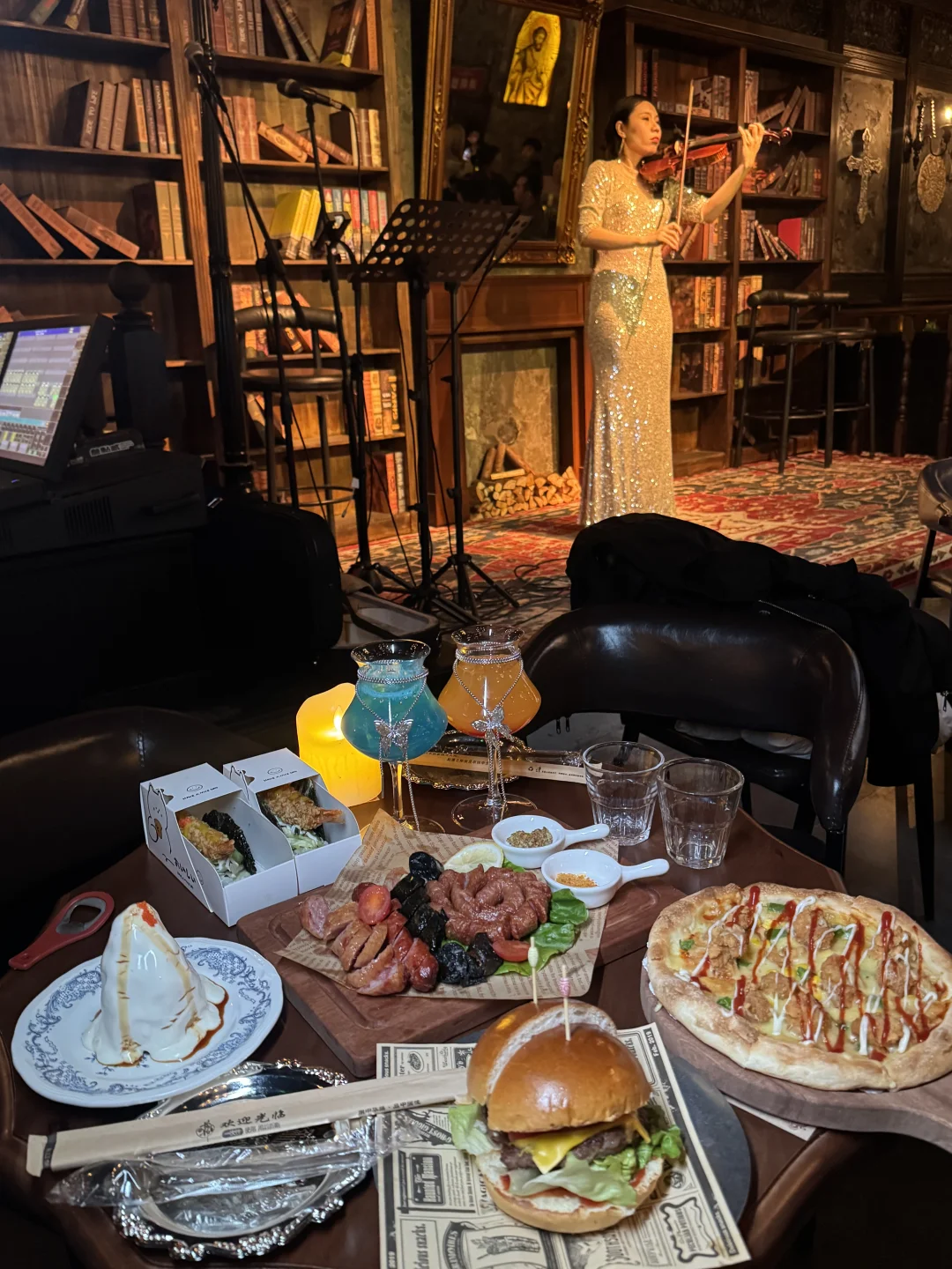 报!!发现一家好好看的bar 和闺蜜分分钟出片 把雅致体现的淋漓尽致 没想到酒吧也能做到如此有品位 吃着taco🌮汉堡🍔披萨🍕 配上洋酒 精致又漂亮的一顿餐