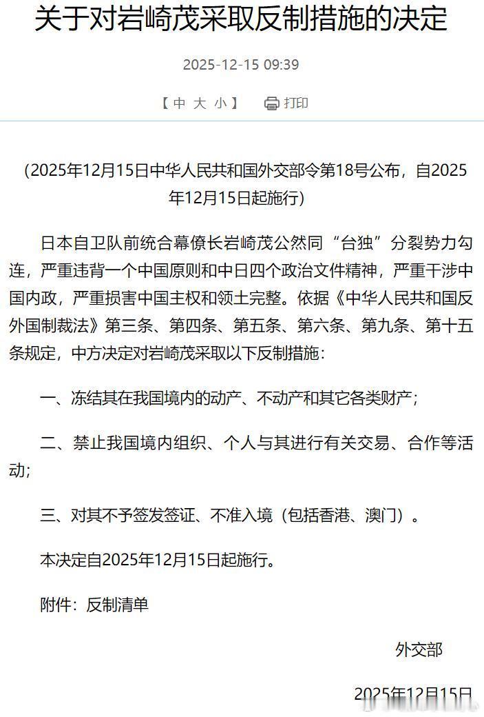 “关于对岩崎茂采取反制措施的决定” 这算不算小日本第一个享受这个待遇的?