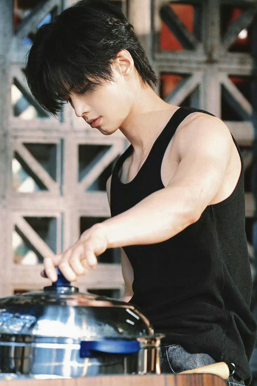 何与黑背心战神 后知后觉get到何与的帅,黑背心勾勒出的完美身形,让我忍不住反复