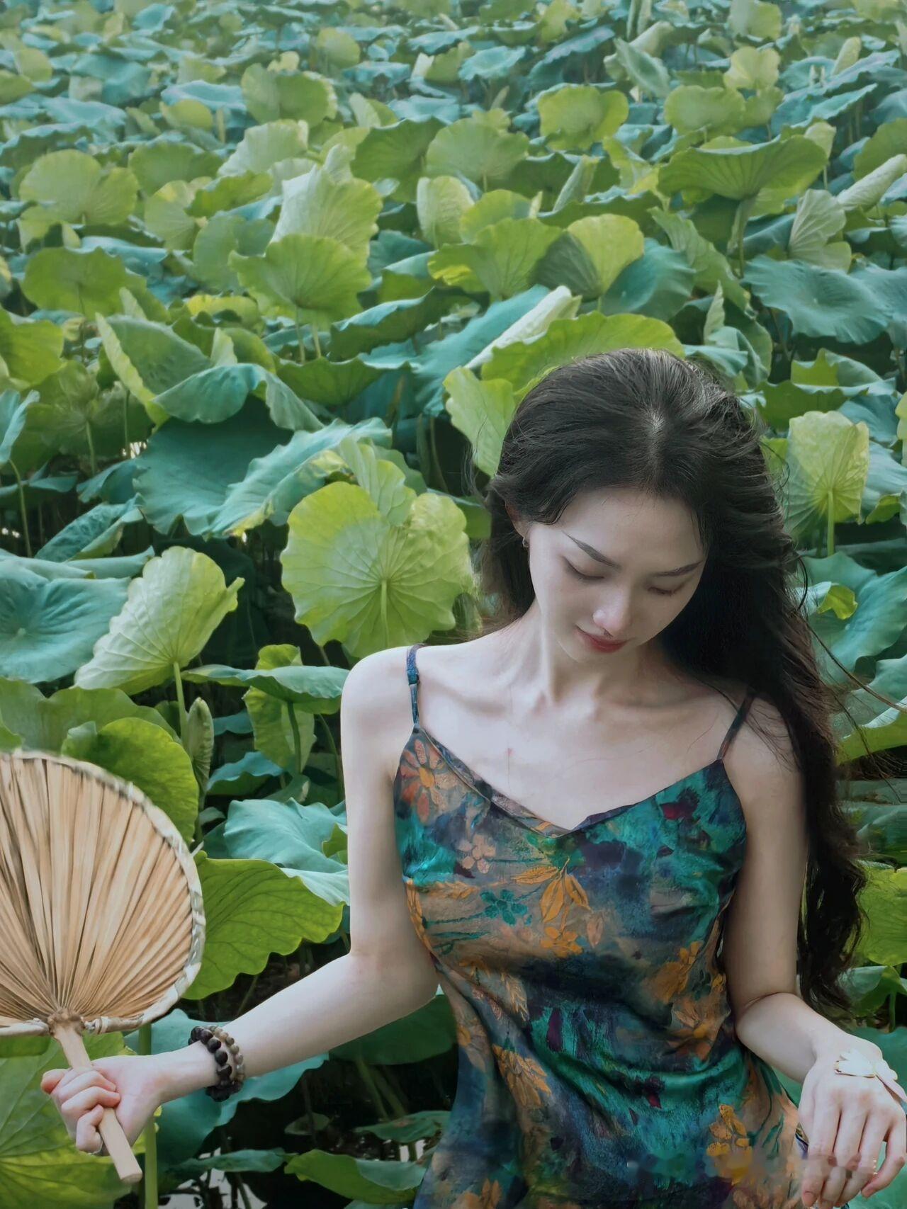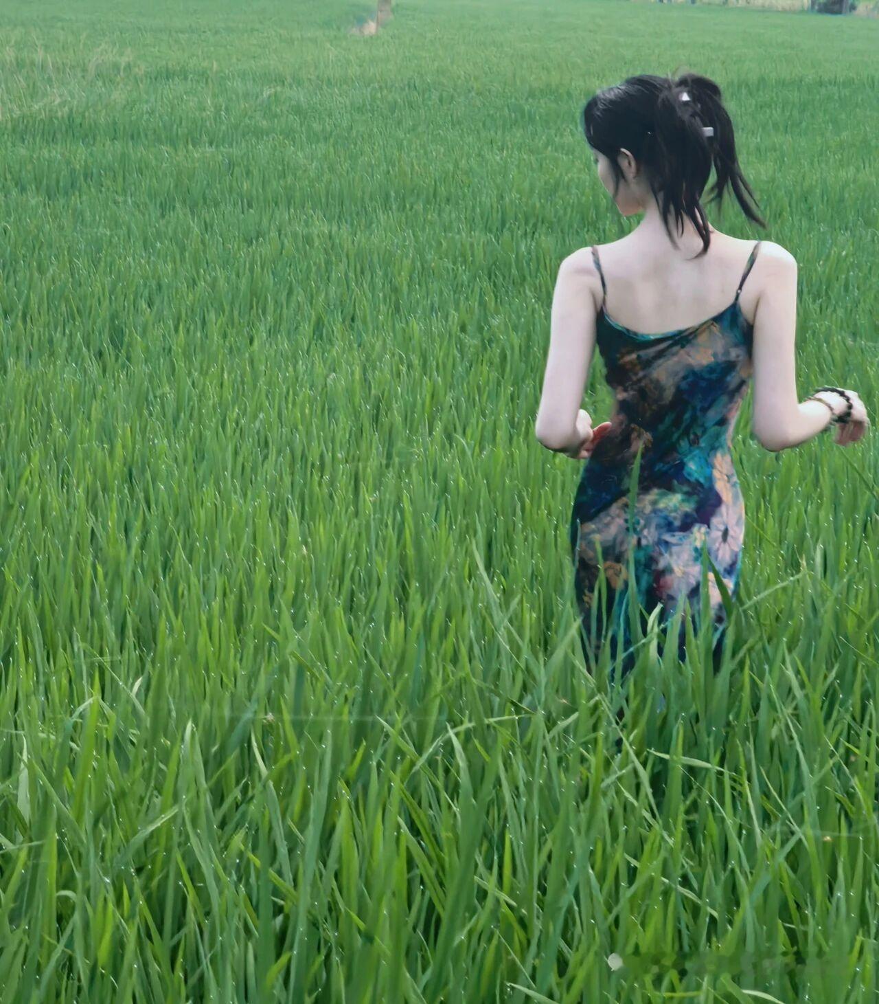夏日荷麦新,彩纱裹玉体。慢摇芭蕉扇,陶醉乡野美。农村