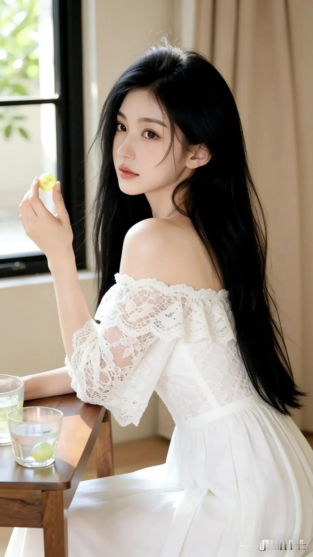 清新氧气美女她坐在那里风就自动慢了