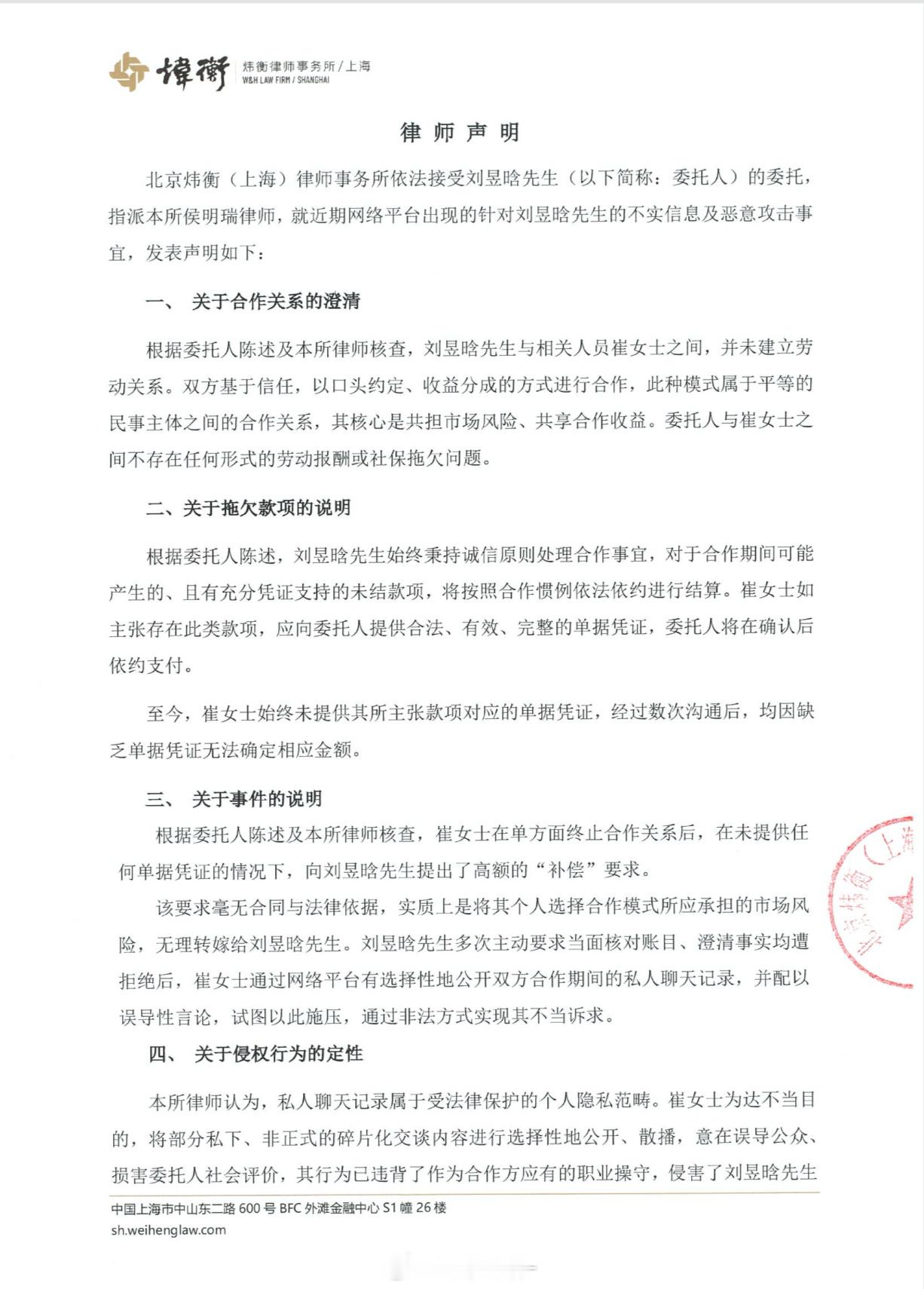 刘昱晗发律师声明刘昱晗回应拖欠员工工资 刘昱晗发声明回应拖欠员工工资↓