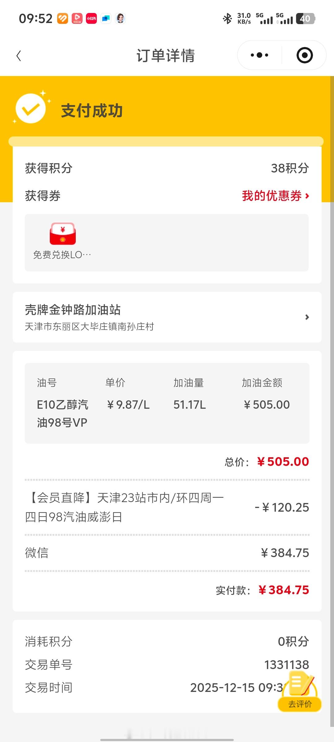 壳牌98号油 周一周四周日每升降2.35元啊,这比95还便宜瞬间觉得中石化逢8减1块不香了 怼满98去验车~一把过!