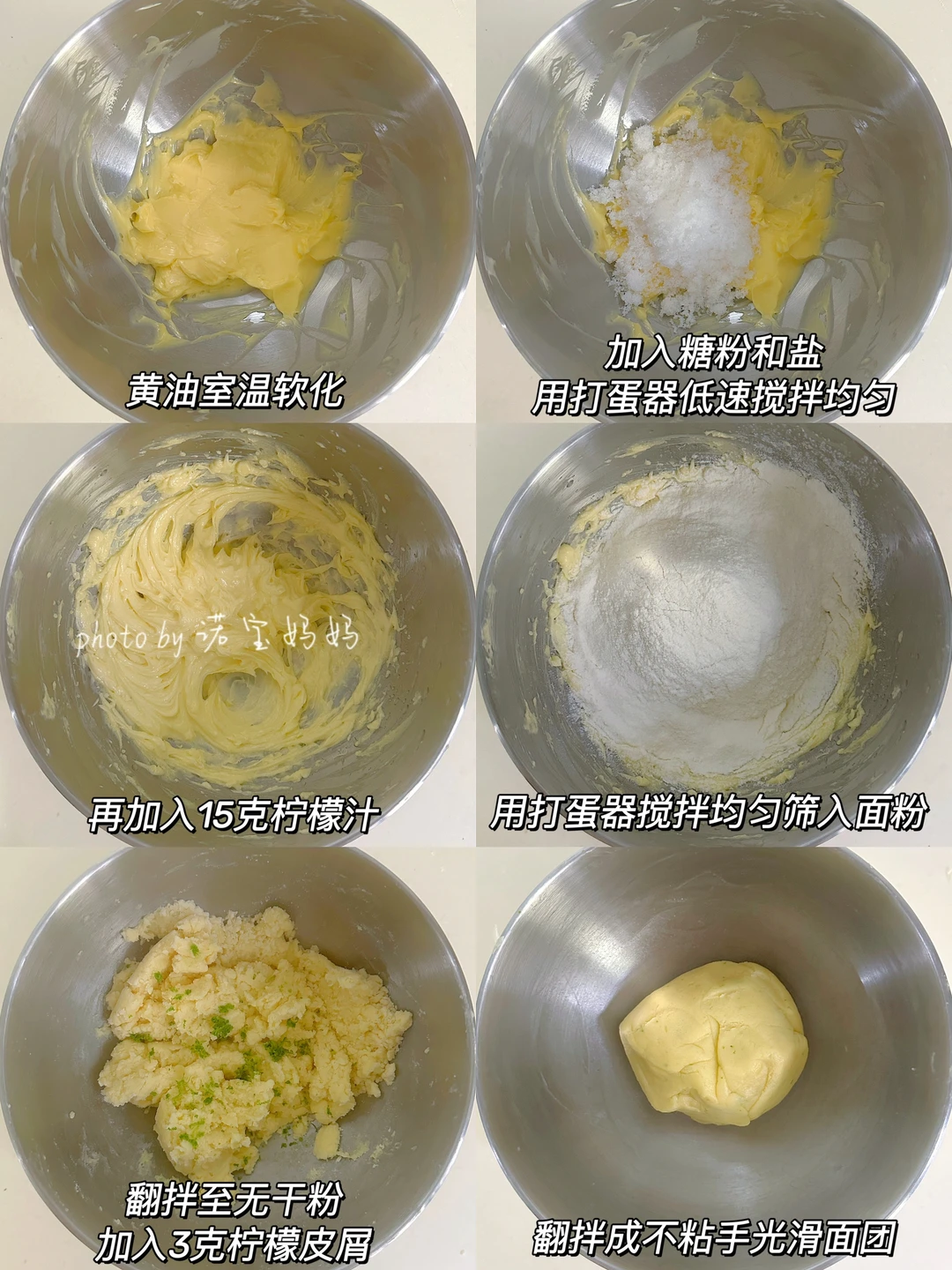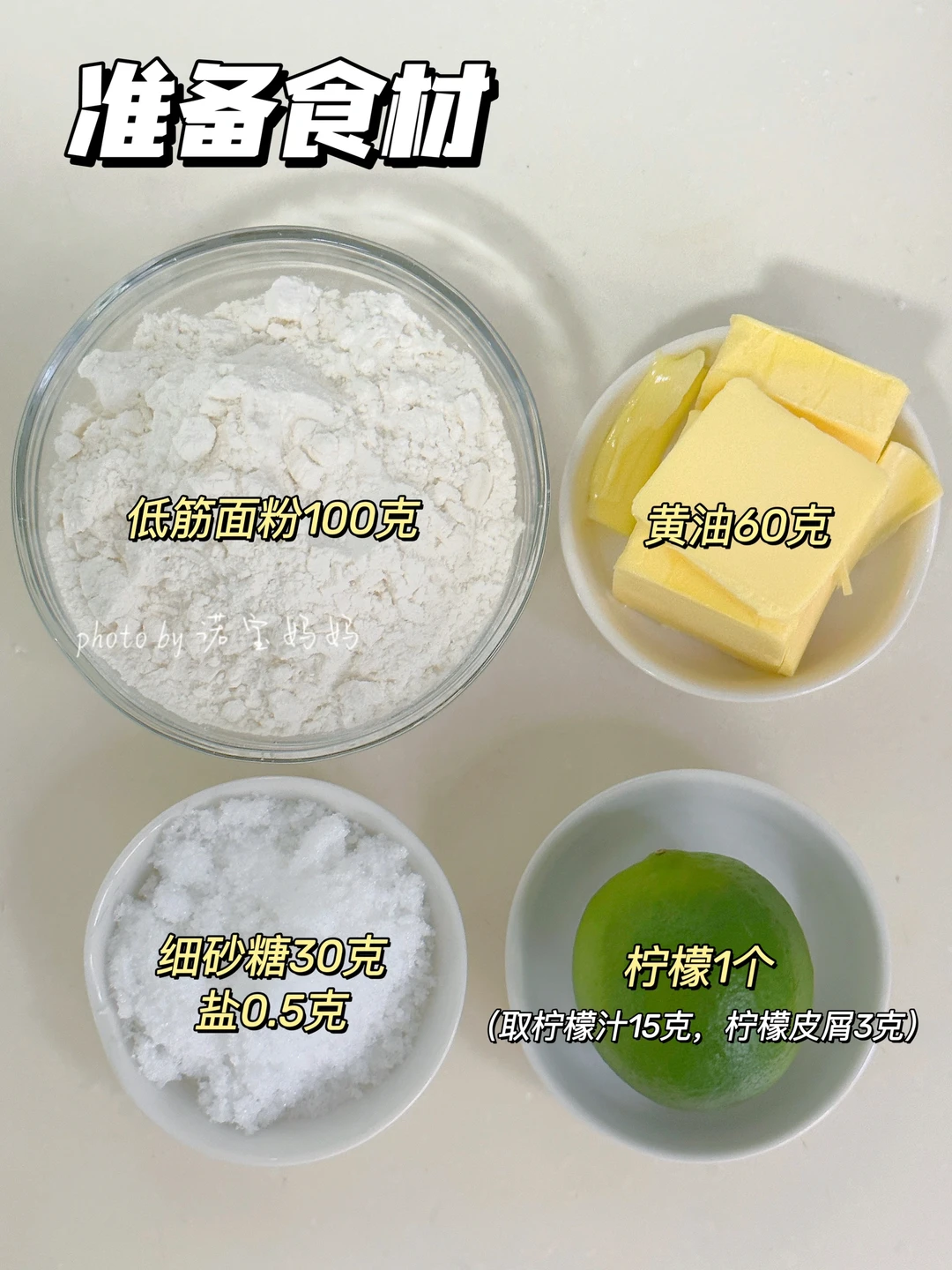 低筋粉 100克,黄油60克,柠檬汁 10-15克