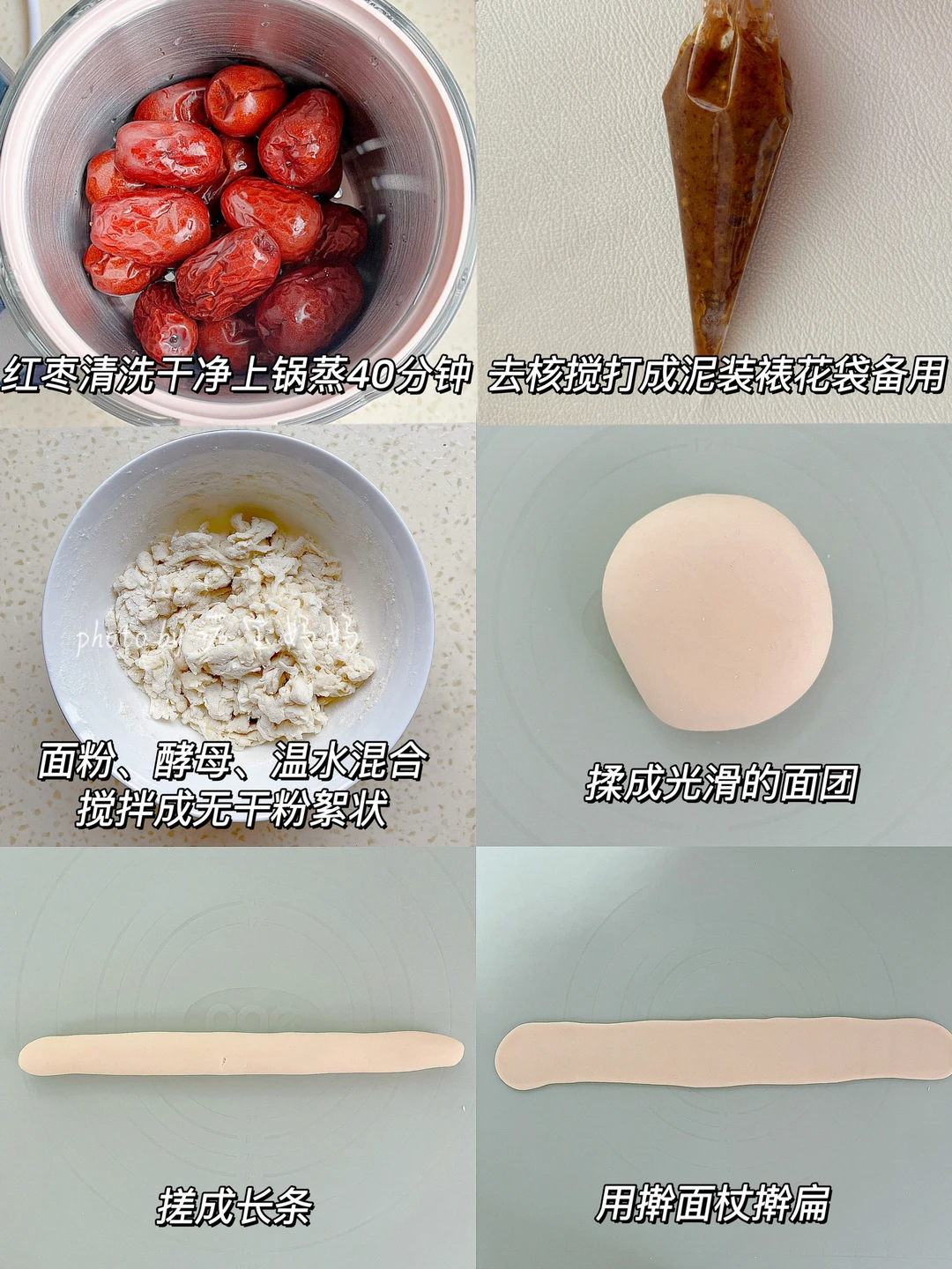 1️⃣红枣蒸30分钟(可去皮),搅打成泥,装裱花袋备用