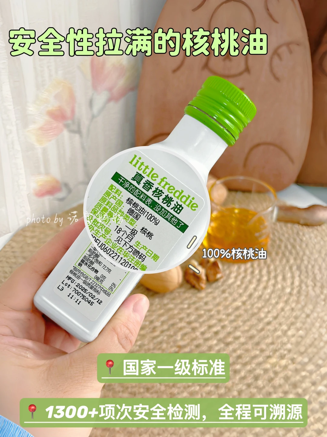 担心安全问题的宝妈们也放心入,我稍微查了下小皮竟然有1300+项次安全检测!我还真没见过哪个辅食油会做这么多检测的,配料表也是干干净净,100%纯核桃油,没有任何其他添加,给宝宝吃,完全不用担心!