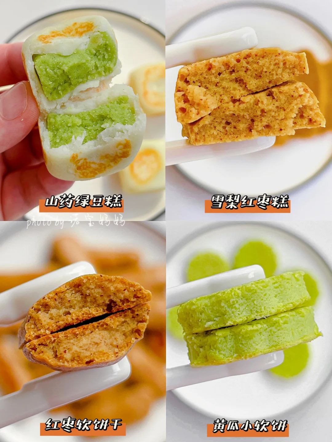今天分享4款简单好吃又好做的宝宝手指食物!每一款都绵绵软软,易消化。宝宝小手拿着吃很方便。还有一款适合小月龄宝宝的无面粉软皮绿豆糕哦!姐妹们,快安排!😋