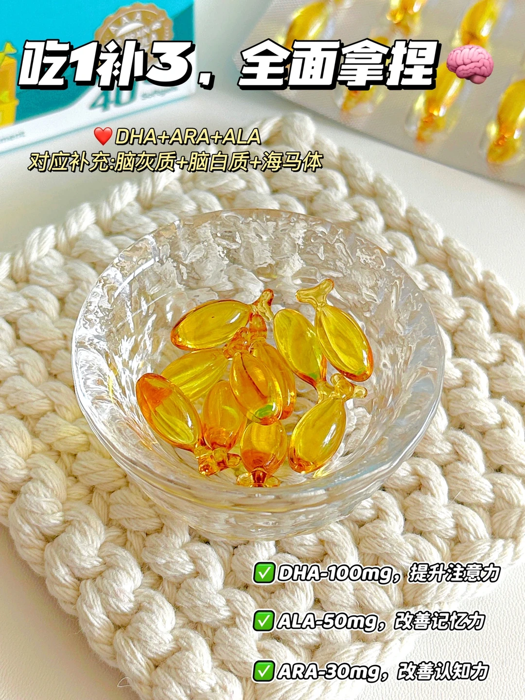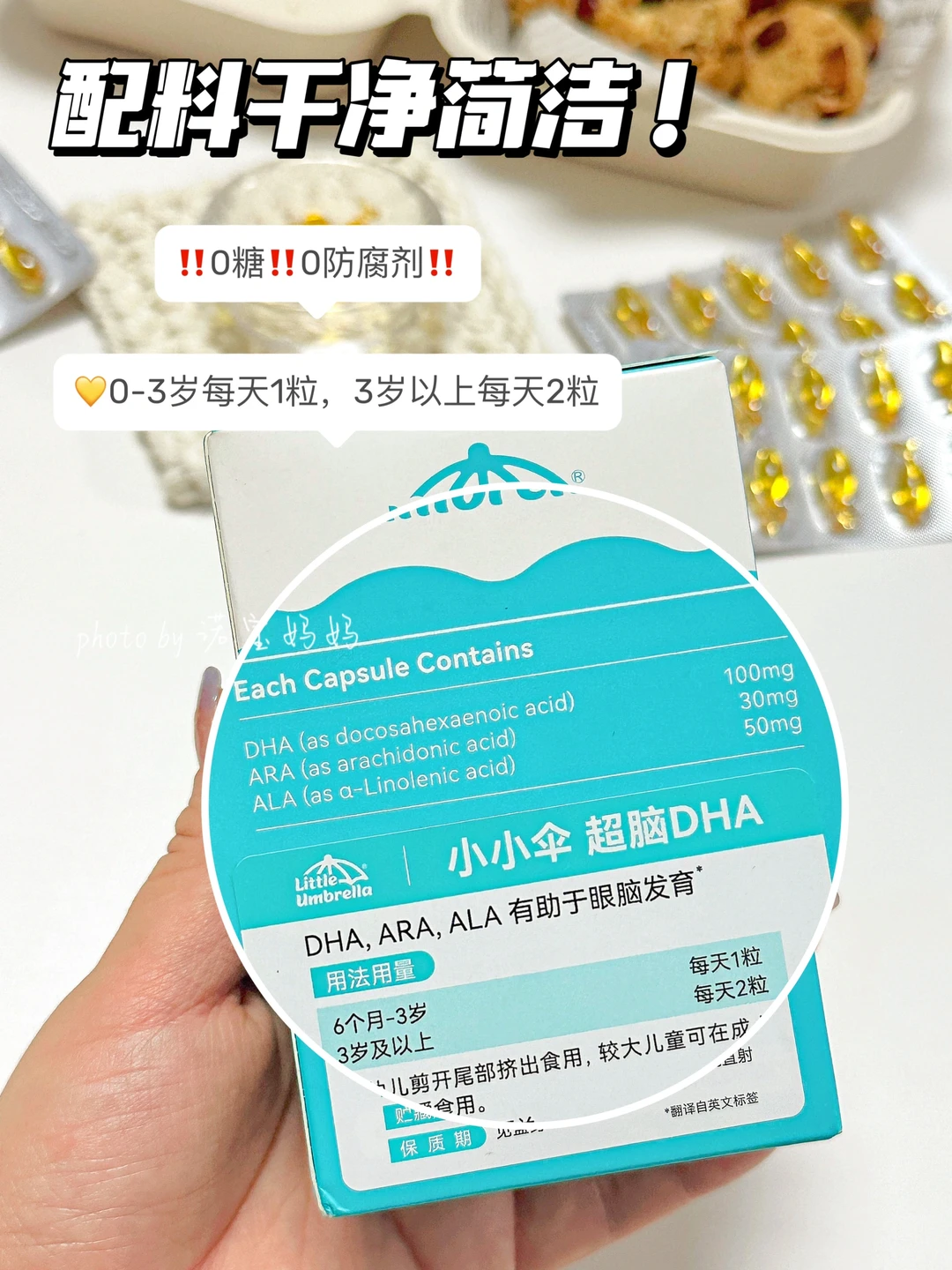 DHA对宝宝大脑👀🧠发育很重要,除了平时饮食中多吃含DHA的食物,可以加入DHA补剂!今天推荐的是这个小小伞超脑DHA,营养成分里面采用了独特的3A配方,即DHA+ALA+ARA三种成分发育的黄金组合👍