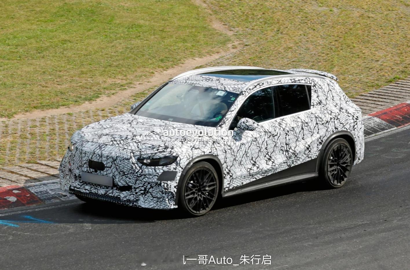 全新奔驰AMG GLC纯电版的谍照图曝光新车将搭载双电机驱动系统车顶配备了可伸缩的扰流板纯电续航最高为713公里感觉可以期待下撕开谍照后的样子
