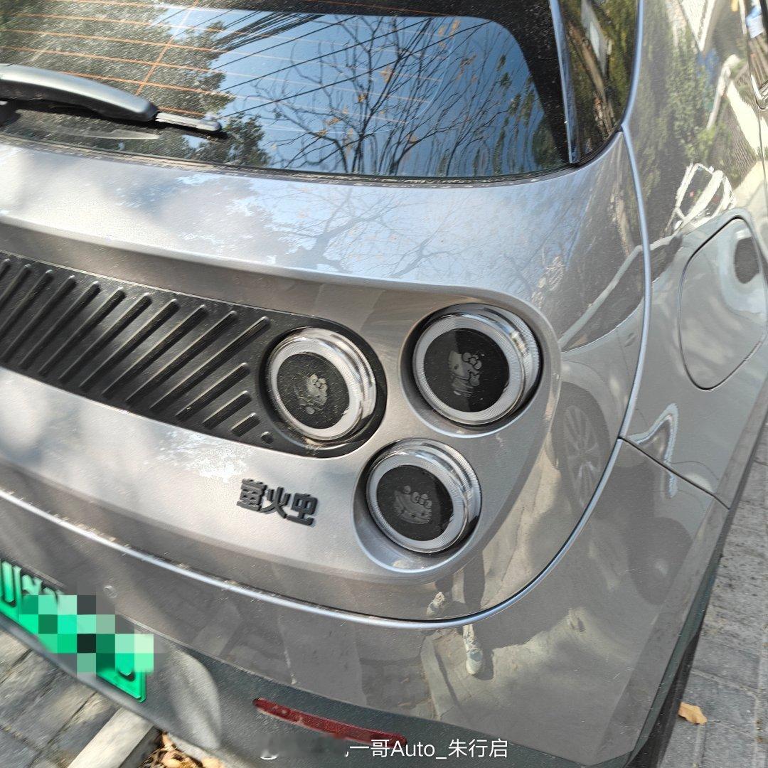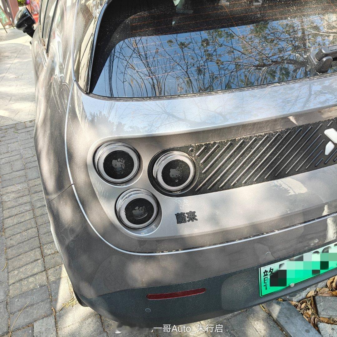 路上看到辆蔚来萤火虫感觉现在的汽配城真不错居然把苹果手机的三孔大灯里面更换成了哈喽kitty猫只能说这个改装设计真挺符合女孩子diy的少女心