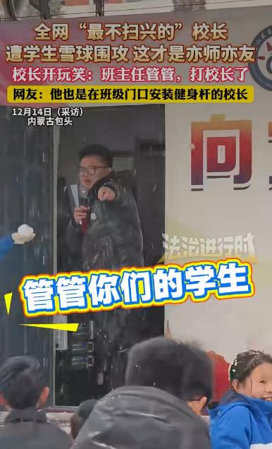 内蒙古包头一所中学的校长被学生用雪球“围攻”了,边躲边喊班主任来管管,结果网友们
