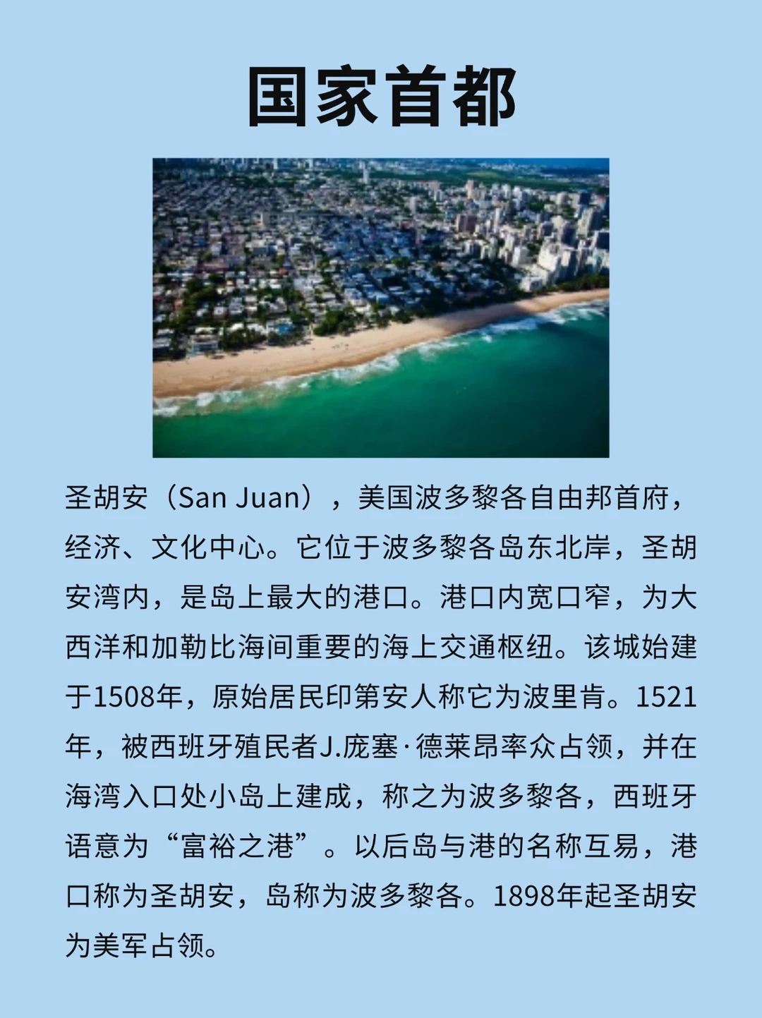 [私信R]位于加勒比海大安的列斯群岛东部,北临大西洋,南濒加勒比海,东与美属、英属维尔京群岛隔水相望,西隔莫纳海峡同多米尼加共和国为邻,首府为圣胡安。