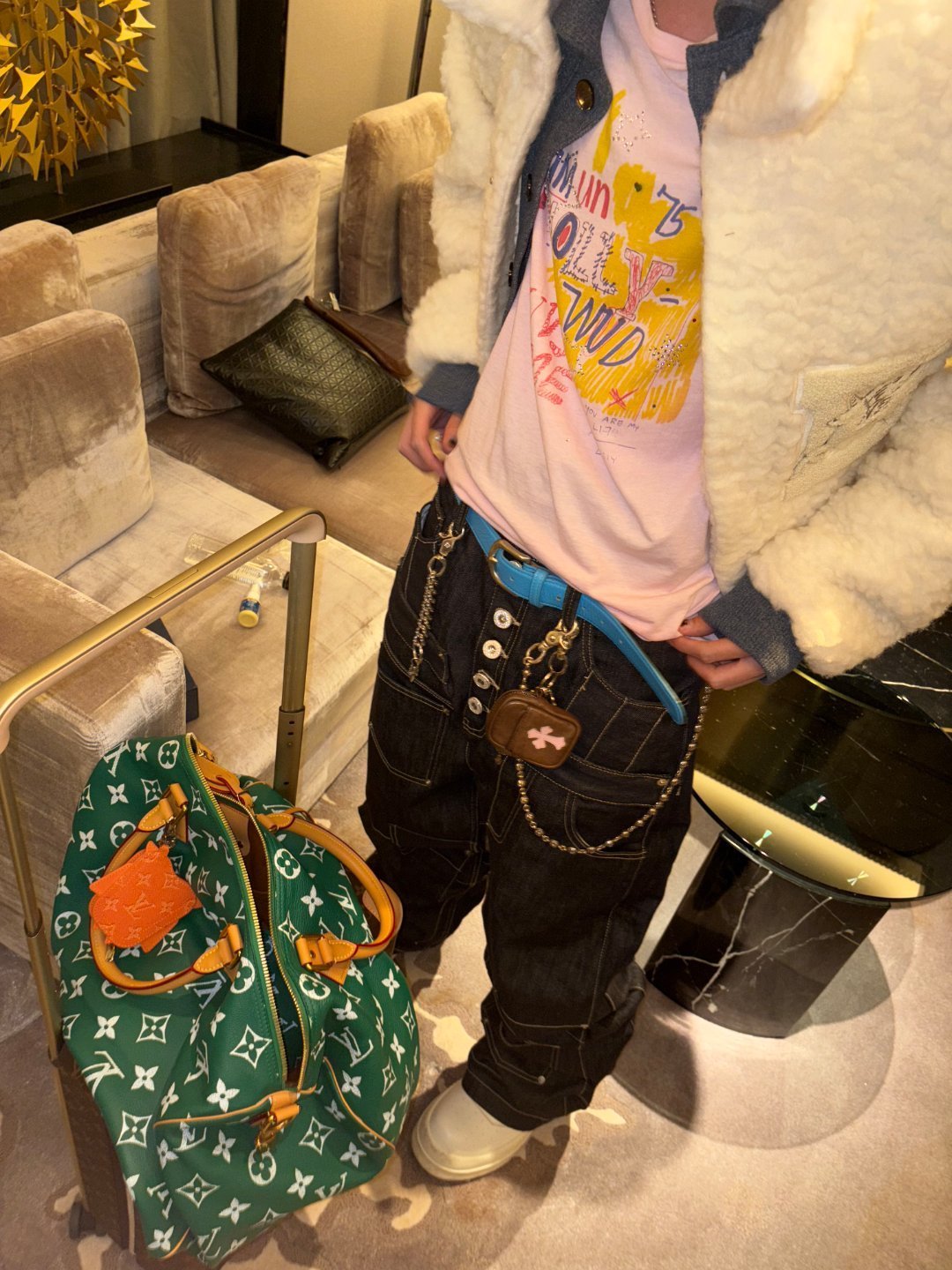 徐明浩 THE 8 STYLE 📸ERL夹克,Paly Hollywood T恤,DONCARE牛仔裤, Louis Vuitton墨镜、鞋履与Speedy手袋单品点缀,来自天才徐明浩的一些潮流教科书穿搭😎✨风格大赏时尚灵感解读