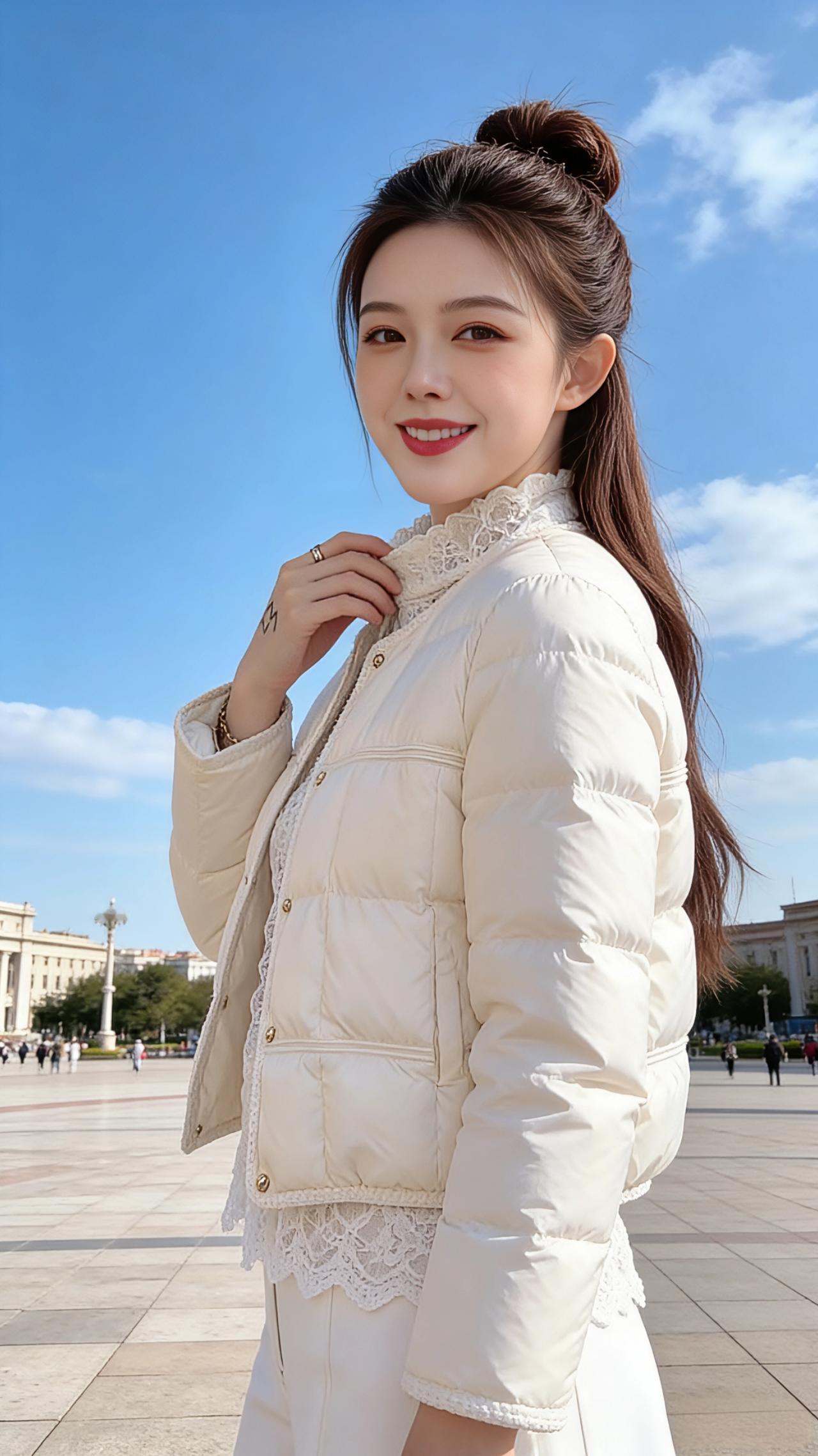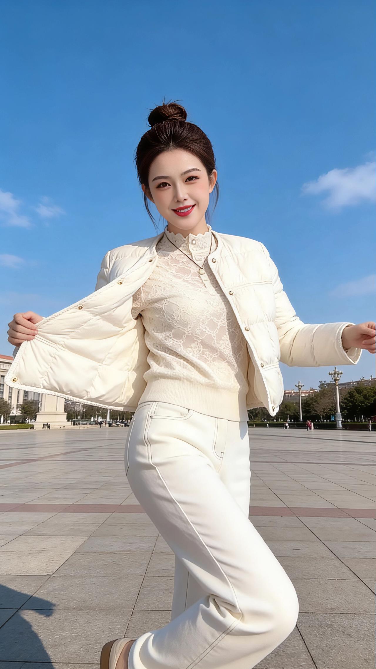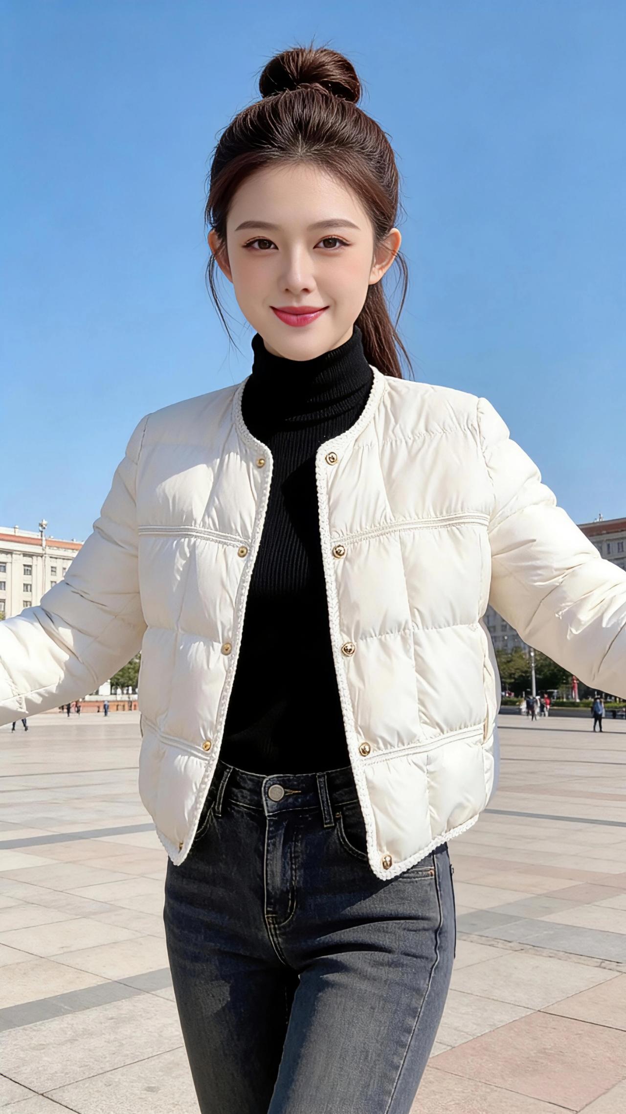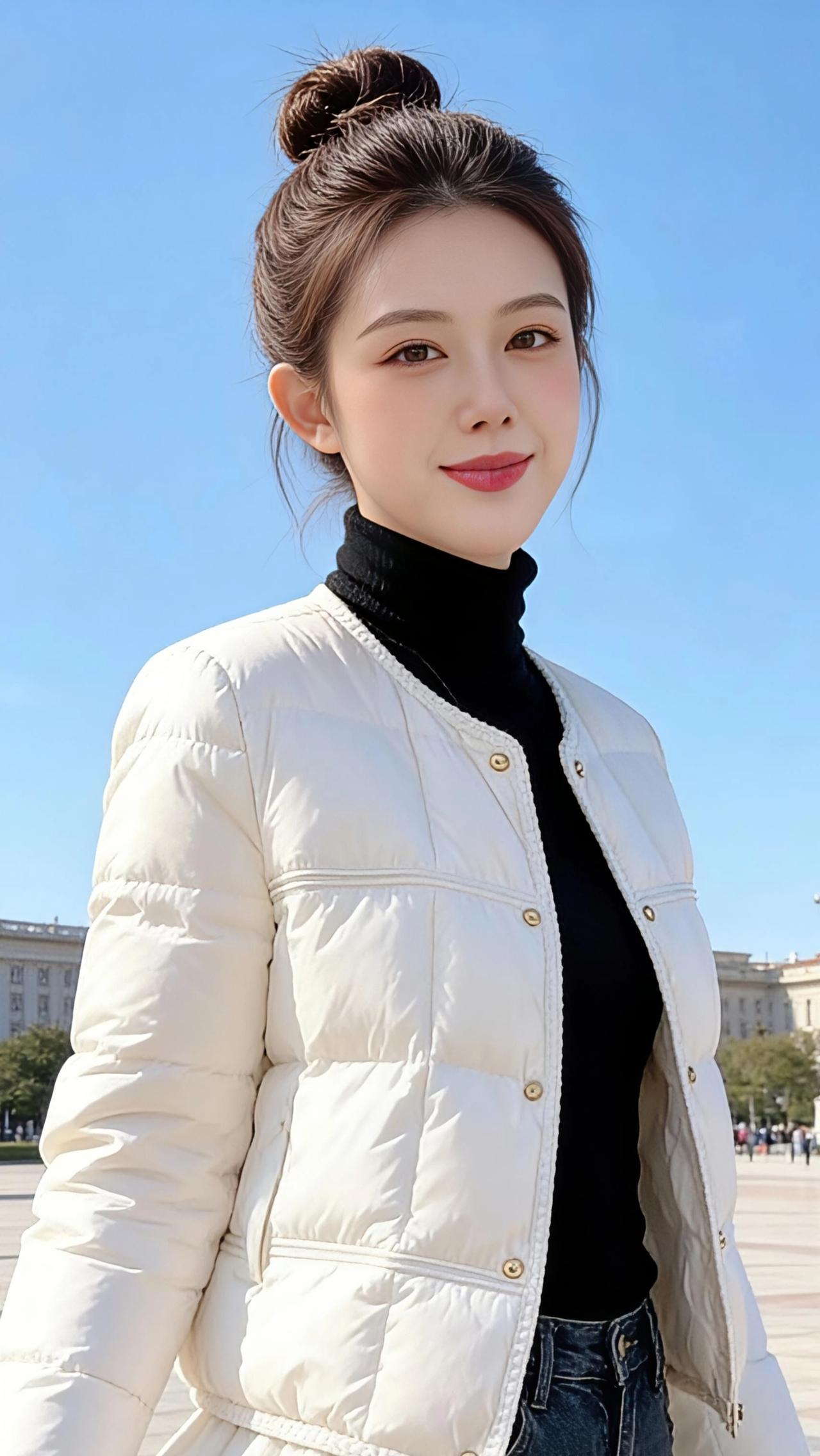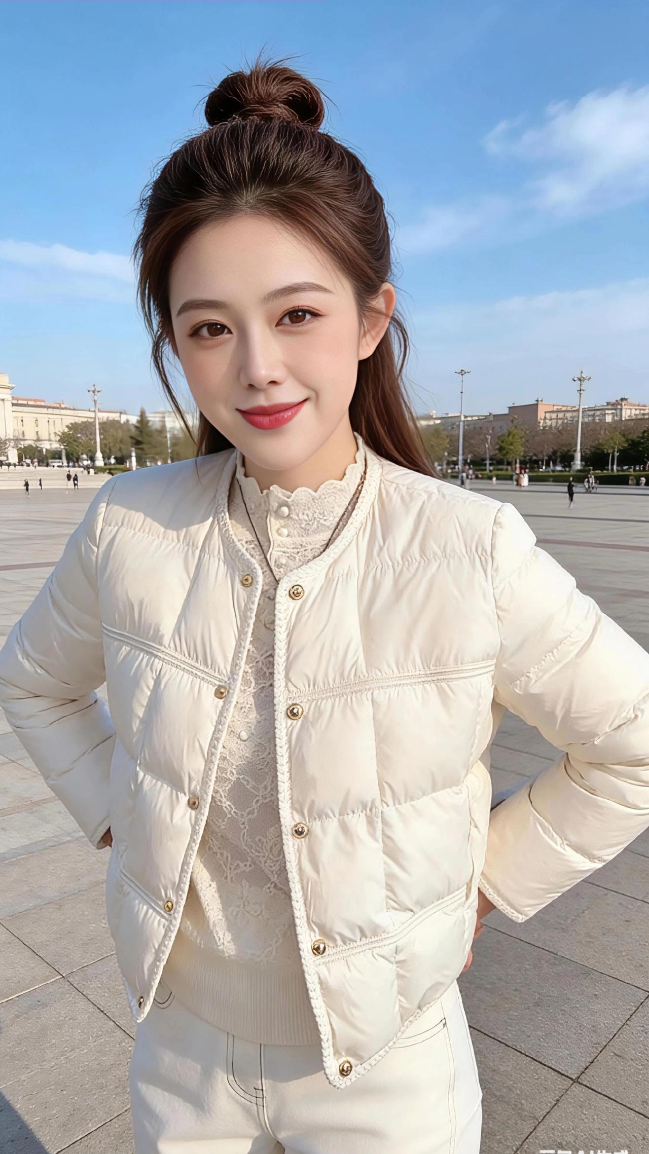 冬日里的轻暖序章 冬日的风掠过广场,却被一件米白短款羽绒衣轻轻拦下。阳光碎在衣料的菱格纹路里,像揉皱了的金箔,暖融融地裹着肩头。丸子头高高束起,发梢的碎缕被风拂着,倒添了几分灵动。 内搭的蕾丝衫勾着细腻的花纹,在素白的羽绒下漾出柔婉的肌理,是冬日里不肯收起的温柔。抬手拉开衣襟的瞬间,风钻进来,却又被衣内的暖意抵回,仿佛握着一小团不化的春光。换搭黑色高领时,又是另一番利落,米白与墨黑撞出冷冽的精致,牛仔裤的粗粝纹理中和了羽绒的软,让冬日的穿搭多了层刚柔相济的韵味。 待到雪落的郊野,浅灰羽绒衣成了天地间的一抹素色。雪粒沾在发梢,指尖轻拢发丝时,羽绒的蓬松裹着身子,竟觉不出寒。木栈道的积雪咯吱作响,衣摆随着脚步轻晃,像把冬日的冷意都揉成了蓬松的云朵,揣在怀里,只留一身轻暖,和眼底藏不住的笑意。 高级感穿搭 小个子穿搭 冬季穿搭 棉衣棉服