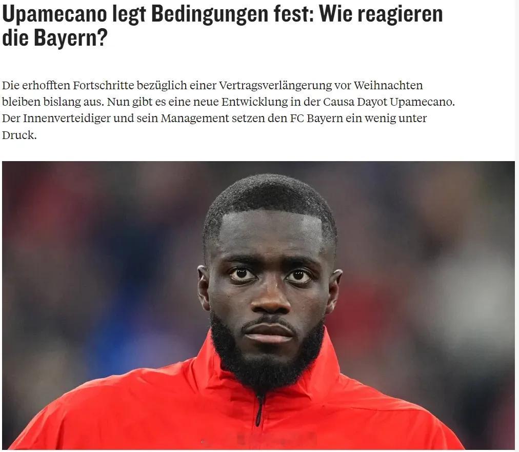 踢球者消息,拜仁和乌帕梅卡诺的续约谈判已经到了关键阶段,而球员的阵营已经告知德甲豪门高层,除非工资待遇等条件得到满足,否则谈判实际上已经结束了。27岁的乌帕梅卡诺合同明年夏天到期,他最早从下个月开始就能和国外俱乐部预签合同,因此拜仁还有几周时间锁定这名中卫的未来,否则就有赛季结束后免费失去他的风险。本赛季乌帕梅卡诺在孔帕尼手下发挥出色,而踢球者和体育图片报都表示法国人想要1600万欧元的年薪,并且还要加上违约金条款,不过,据悉球员方面对拜仁迟迟不愿满足他们的要求感到越发失望。