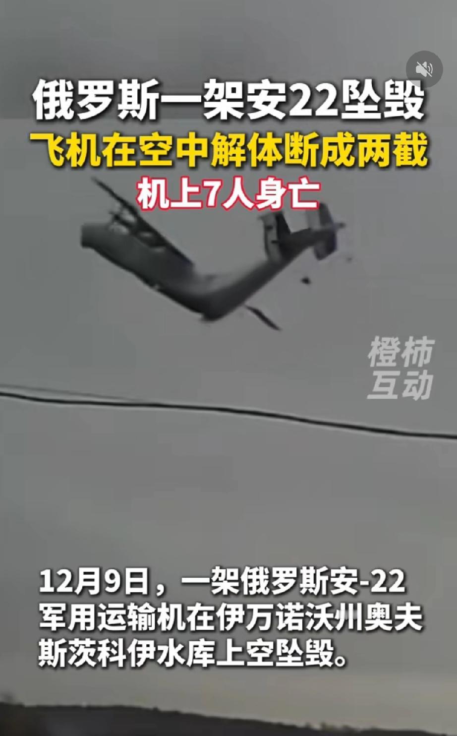 俄罗斯一架安22军用运输机在空中解体断成两截,机组人员全部身亡。 乌克兰再一次搬起石头砸了俄罗斯的光头小宝贝