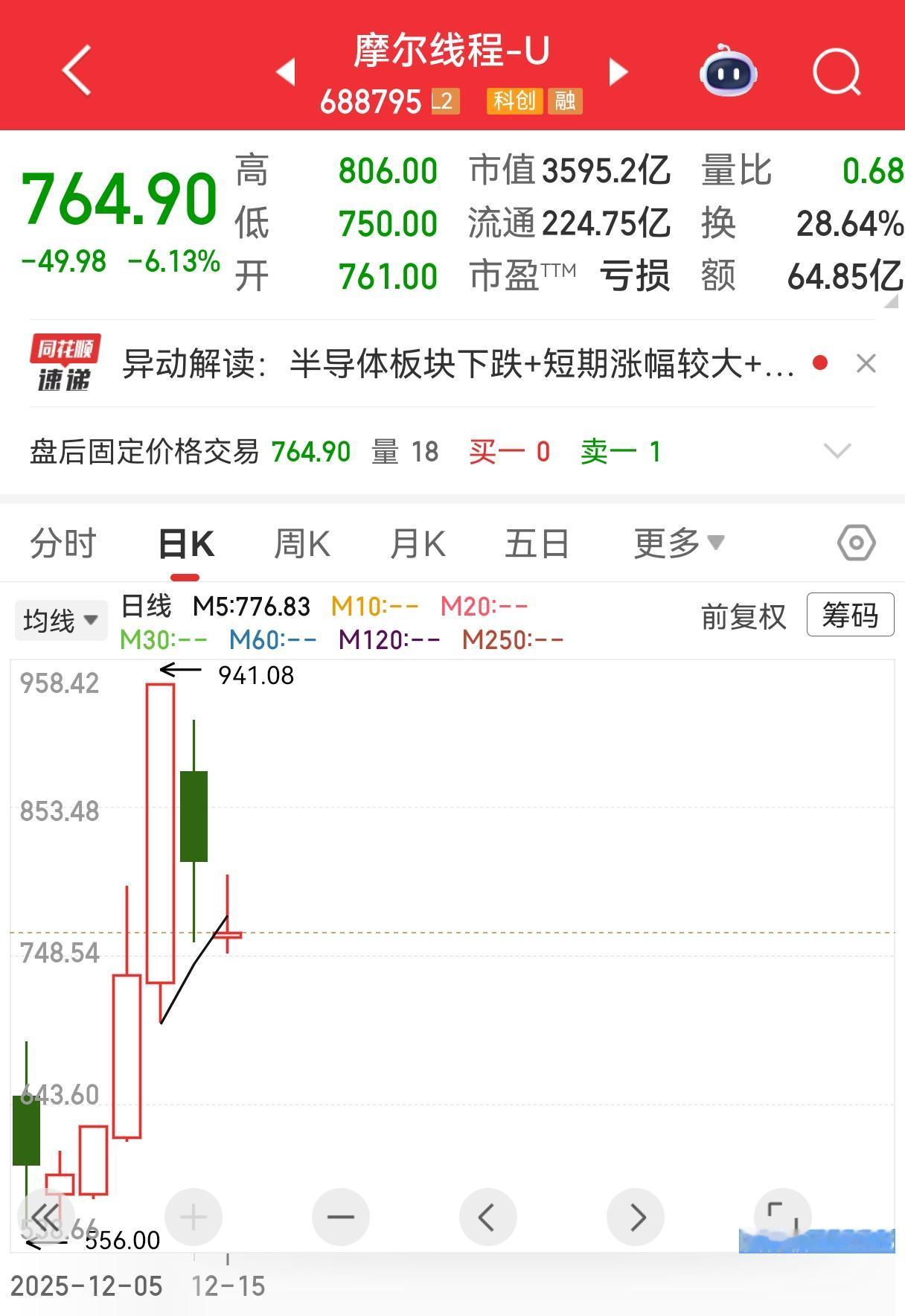 沐曦股份12月17日要上市了,好多人都在猜测它能不能像摩尔线程那样上市当日翻几倍。摩尔线程上市当天那表现确实惊艳,股价一路飙升,给投资者带来了丰厚回报。不过,沐曦股份能不能复制这样的辉煌可不好说。 股市这东西充满了不确定性,公司的业绩、市场环境、行业竞争等都会影响股价。沐曦股份自身的实力和发展前景很关键,如果它有独特的技术优势、良好的盈利模式,或许有机会创造佳绩。但要是市场不买账,或者遇到行业不景气,那想当日翻几倍可就难了。咱们就拭目以待吧。 摩尔线程市值