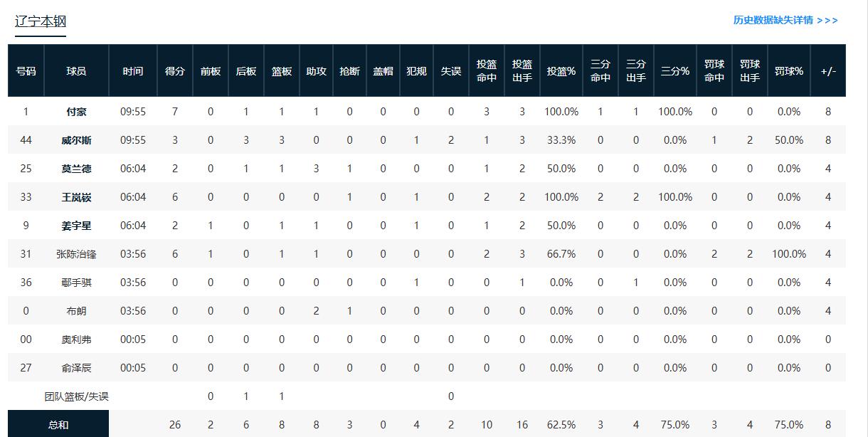 辽宁队这场比赛打卫冕冠军显然是做足了准备,第一节面对广厦队的强延误,依旧那么从容淡定,整体的状态都很好,第一节只投丢了一个三分。 这状态要是一直延续到结束,这场比赛的胜方真很难说,看看辽宁队能不能爆冷拿下卫冕冠军!