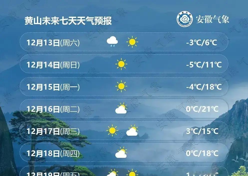黄山这地方终于迎来今年冬天的第一场雪了!13号那天,景区里白茫茫一片,雪花飘飘的,冻得人直打哆嗦。安徽这边也跟着遭殃,冷空气一来,南部气温还往下掉,风呼呼刮着,阵风能到7级。沿江和江南有小雨,皖南高山上甚至夹着雪花。 转眼14号早上,淮河以北和山区冷到零下7到5度,沿江零下2到0度,其他地方零下4到2度,黄山今早最低也跌到零下5度。幸好这股寒潮快过去了,从14到19号,全省气温会慢慢爬上来,基本都是晴天或多云为主。黄山未来一周也多晴朗日子,15号开始气温就回暖了。 不过别高兴太早,20号前后又有一波冷空气要来,安徽全省可能又有雨雪天气,其他时候倒是挺稳定的。这种冷热交替的节奏,让人得随时准备衣服加减。黄山雪景虽美,但低温容易感冒,大家出门玩得注意脚下防滑,保暖措施做足了再去赏景。要是忽略这些,小心乐极生悲。冬天就这样多变,早做准备才能舒舒服服过。