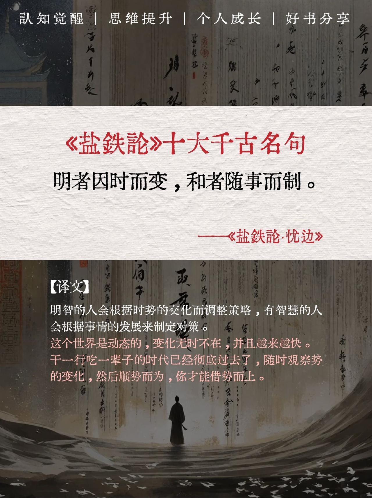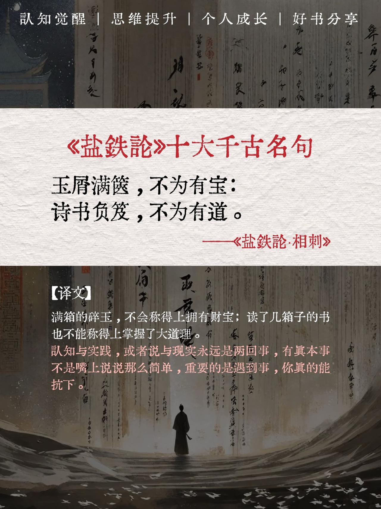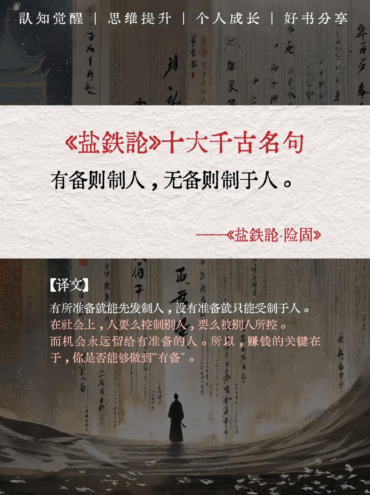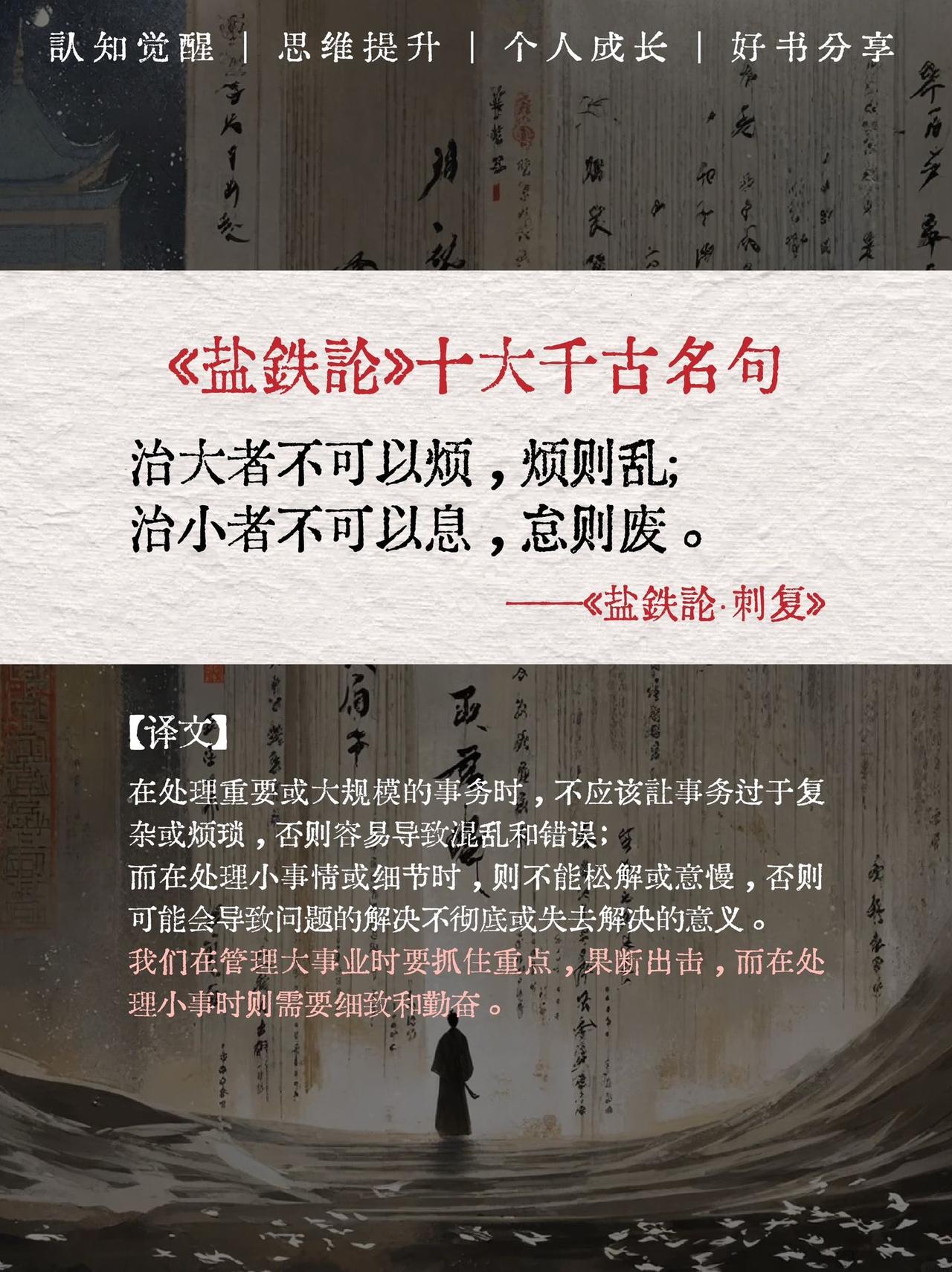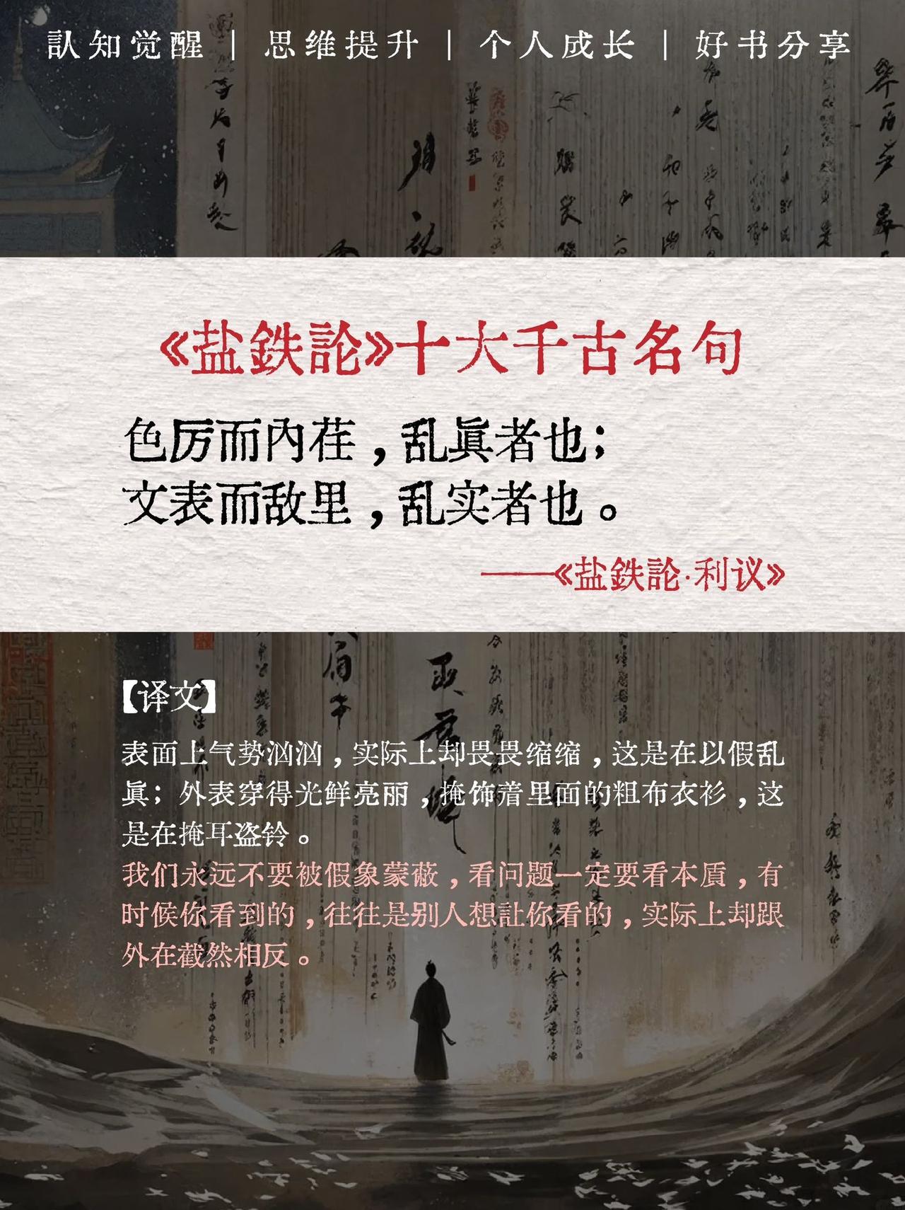 《盐铁论》这10句话,揭示了财富真相,读懂这些话,可以让你少走10年弯路。看完之后,周少不得不说总结得真精辟到位。比如这句话,茂林之下无风草,大块之间无美苗。意思是茂密的深林中,长不出丰茂的青草;大块的土地里,长不出秧苗。在没有任何优势时,想要获取财富,可以去做一些投入小的轻资产模式,或是一些冷门,竞争小,能够做到持续深耕,也是能赚到钱的。这些话,周少建议大家保存下来,没事的时候,多读一读,多品一品,真的能让你少走很多弯路。#寻美三湘##长沙新朋友# 正版盐铁论经典名著全本全注丛书窥探汉代政治史经济史的真相书