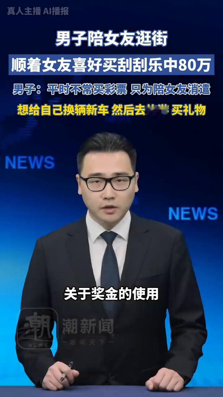 男子陪女友逛街,顺着女友喜好买刮刮乐中80万。男子:平时不常买彩票只为陪女友消遣,想给自己换辆新车然后去旅游买礼物。 潮新闻主持人胡杨。 12月12日报道,男子陪女友逛街,随手刮出80万大奖。上周五下午,陕西渭南的王先生陪女友逛商场时,顺着女友的喜好买了刮刮乐,先刮一本中了290元。女友想停,他坚持再买一本,没想到最后一张竟刮出80万大奖。 王先生说,自己平时不常买彩票,只是陪女友消遣。关于奖金的使用,他也有了清晰规划,想给自己换辆新车,然后去旅游买礼物。目前王先生已完成兑奖。