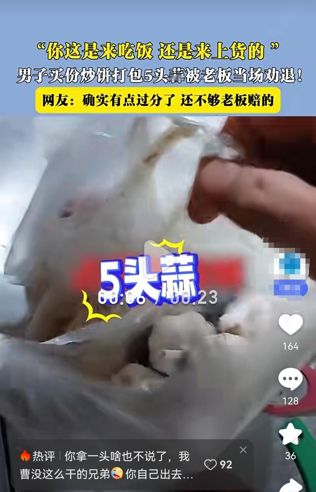 【炒饼没买成,顺走5头蒜把老板整破防了】 昨天有个事儿挺逗:一哥们买炒饼,顺手