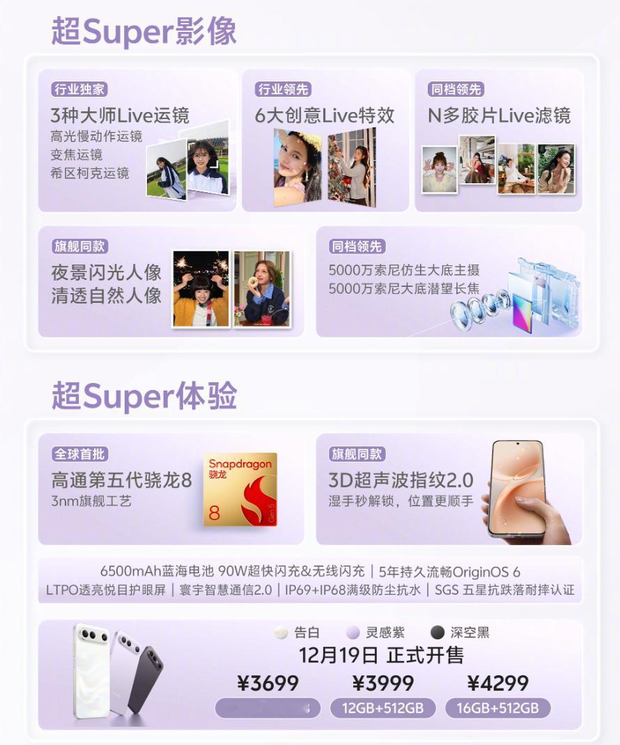 小屏手机颜值手感没得说,但实用性一直让普通用户犹豫,怕配置缩水、体验不佳。直到vivo S50 Pro mini出现,这顾虑全消!它颜值精致高级,灵感紫配色仙气十足,6.31英寸小直屏小巧精致,横行镜组纯平镜头个性独特还实用。拿在手上,手感巨舒服,轻盈细腻久握不累。 可别以为它只是花瓶,实用性堪称同档小屏巅峰。内置高通骁龙8Gen5,旗舰级性能,运行丝滑,游戏畅玩,安兔兔跑分超300万!影像系统更是旗舰水准,Live玩法多,长焦夜景人像都超美。3D超声波指纹2.0,解锁一流。还有IP69+IP68满级防水,日常使用超安心。 实测下来,vivo S50 Pro mini颜值手感绝佳,实用性超强,日常流畅,创作自由。不管是日常还是旅游携带,都是首选。对颜值手感要求高的小屏党,这次vivo新机几乎能满足99%的需求,打破“花瓶”印象,用全能实力征服用户,今年“小屏新星”非它莫属!