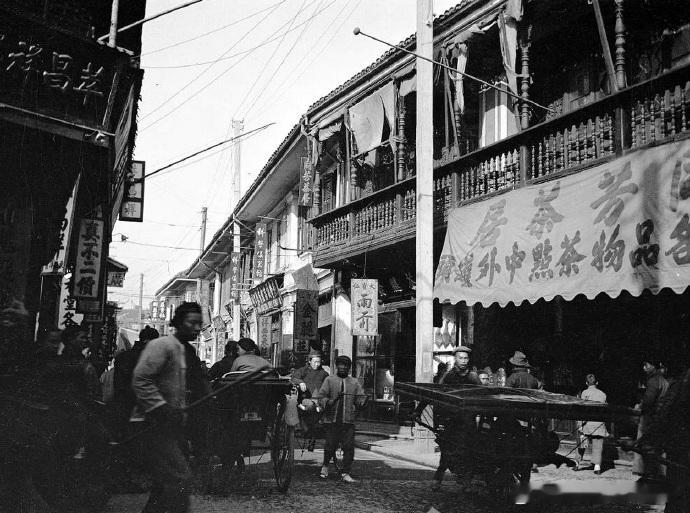 ‼️1938年,中国上海,一名商人被人用手推车推着走在街上。