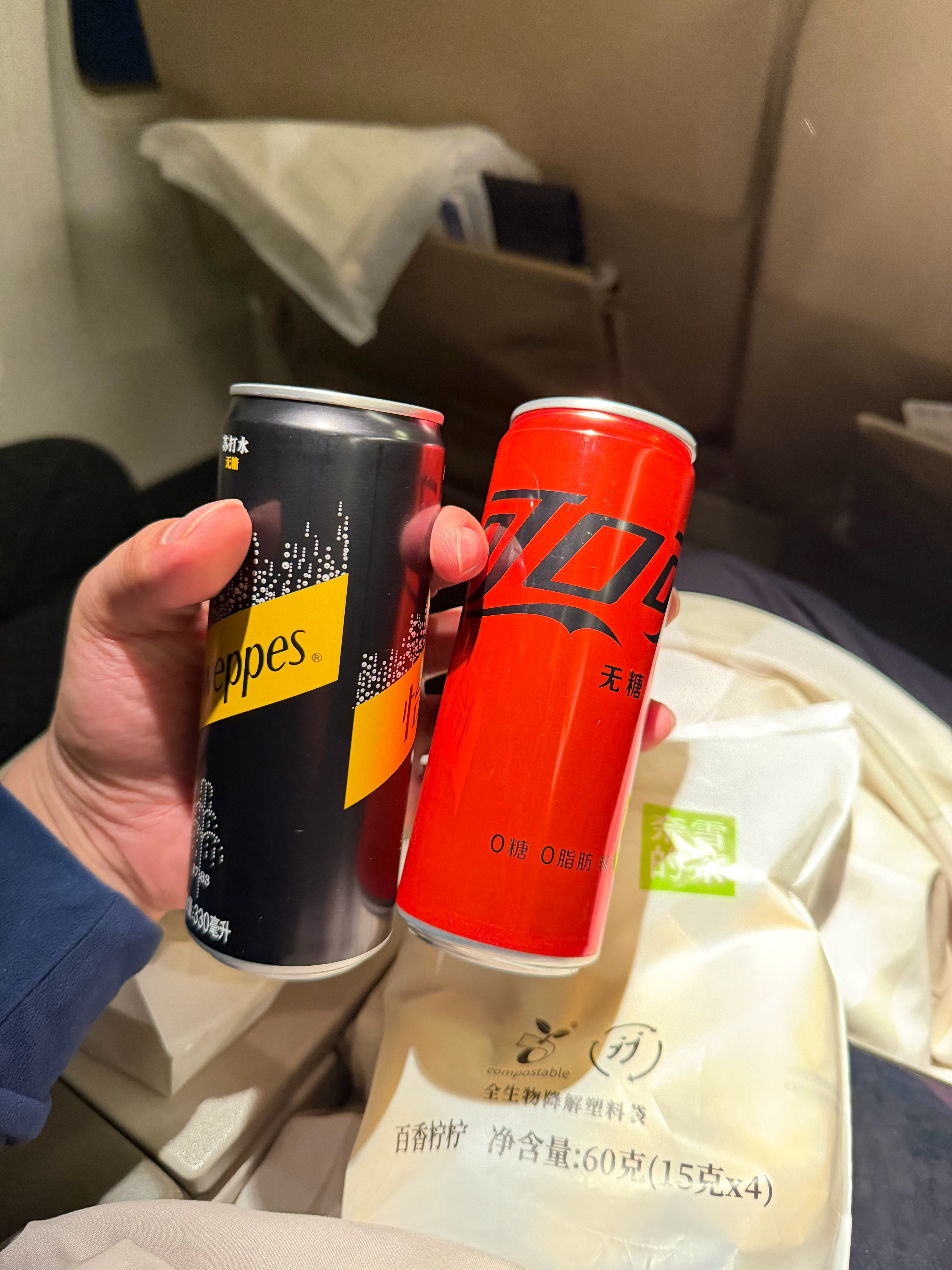 两段航程被空姐一路投喂,喝到了奈雪给东航订做的特饮,还给我们塞了两大包让我们回去