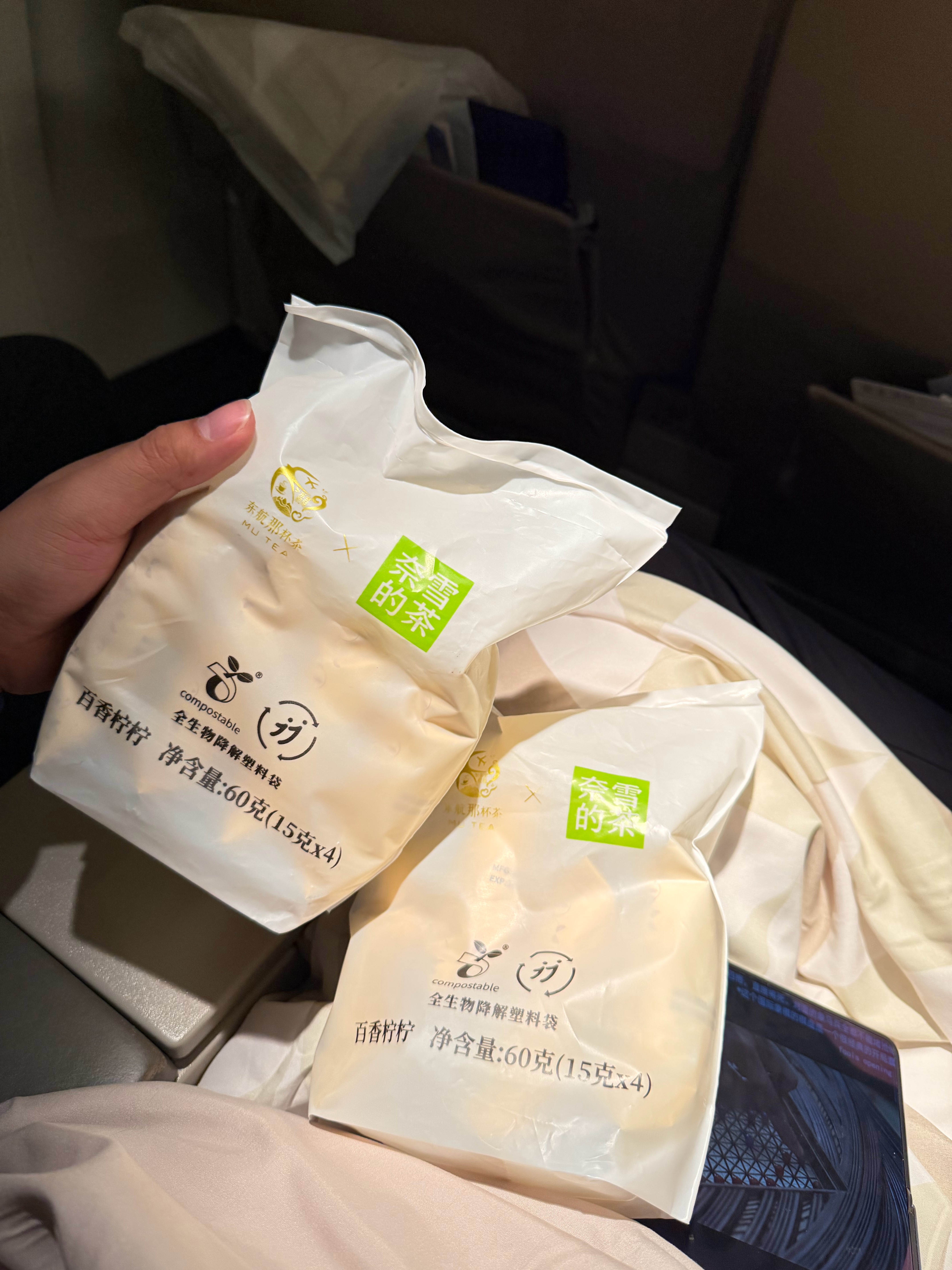 两段航程被空姐一路投喂,喝到了奈雪给东航订做的特饮,还给我们塞了两大包让我们回去喝,果然跟着董事长出门美滋滋