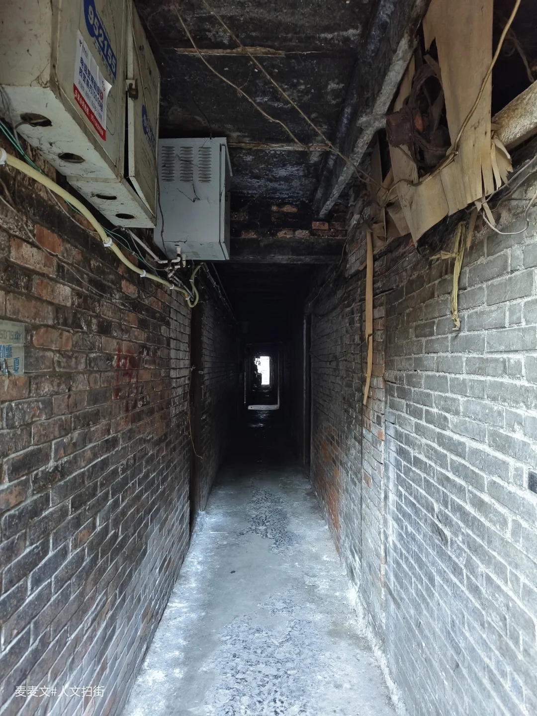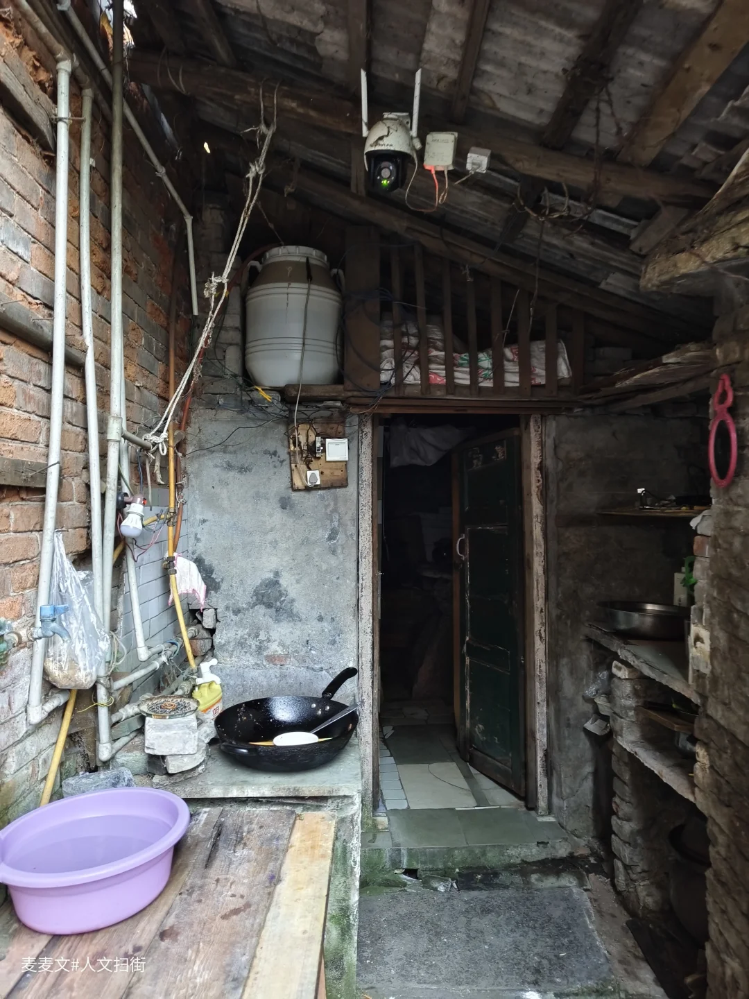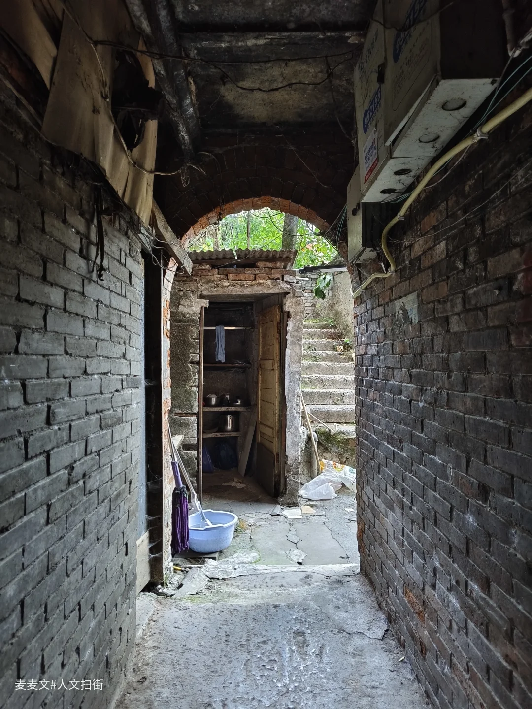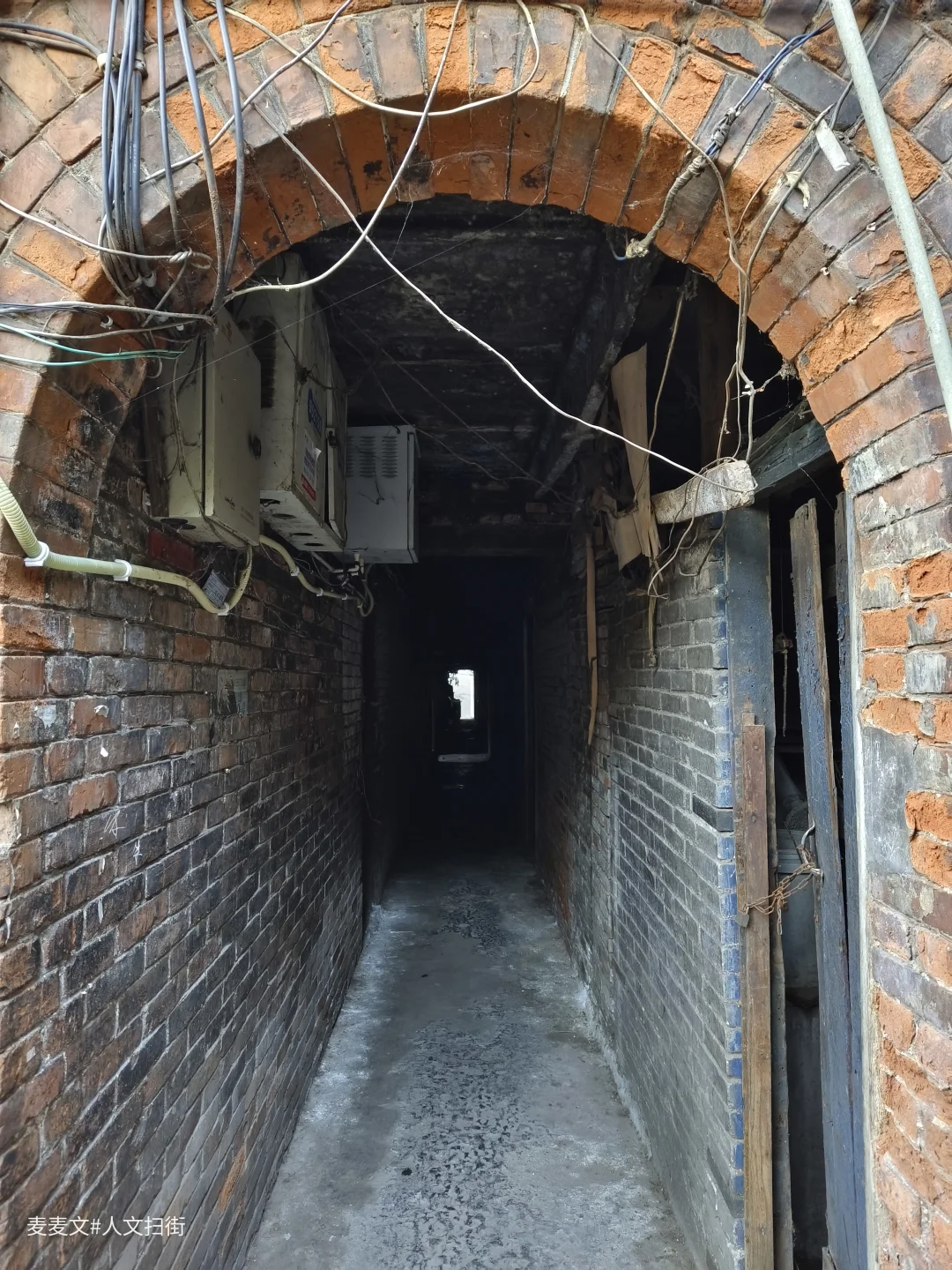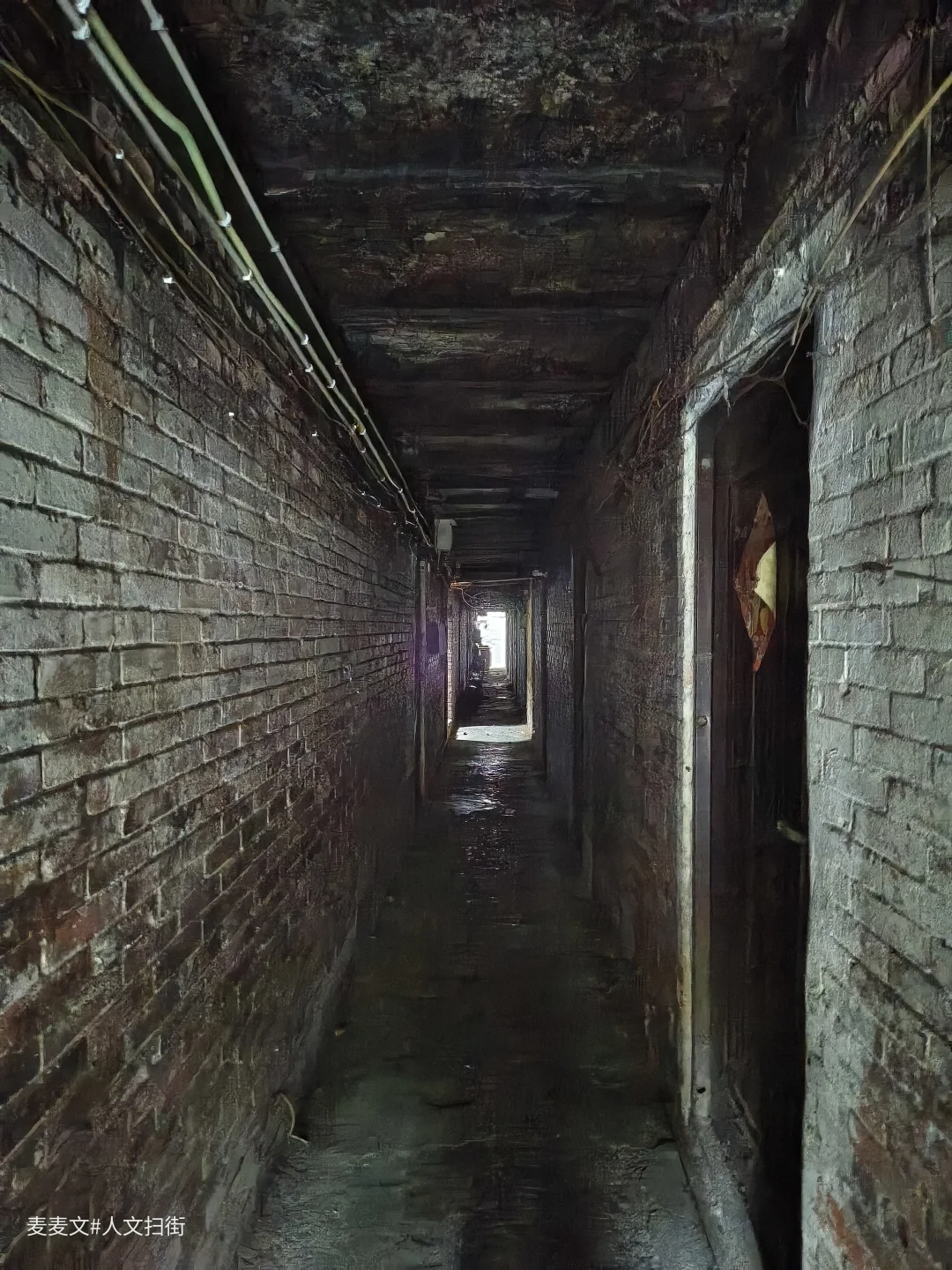 筒子楼走廊尽头的弧形砖门十分吸睛,那独特的造型,在一众方正的建筑元素中显得别具一格。墙上杂乱却又充满生活逻辑的电线,以及那有些褪色的门牌号,都在无声地讲述着这里的过往。