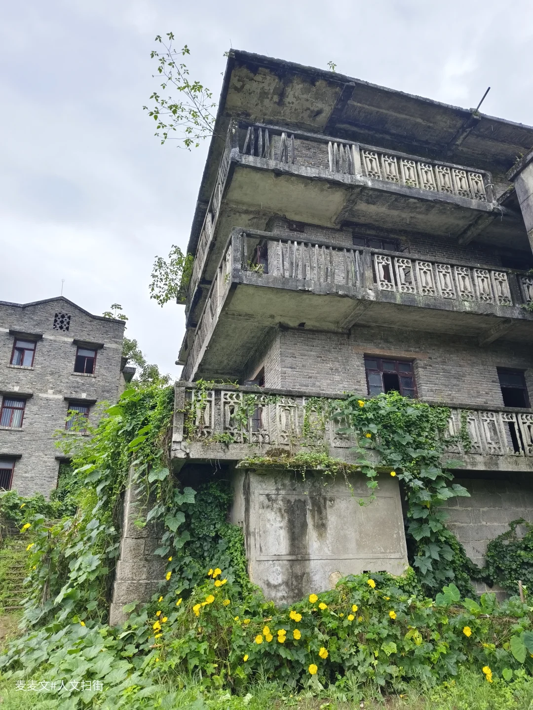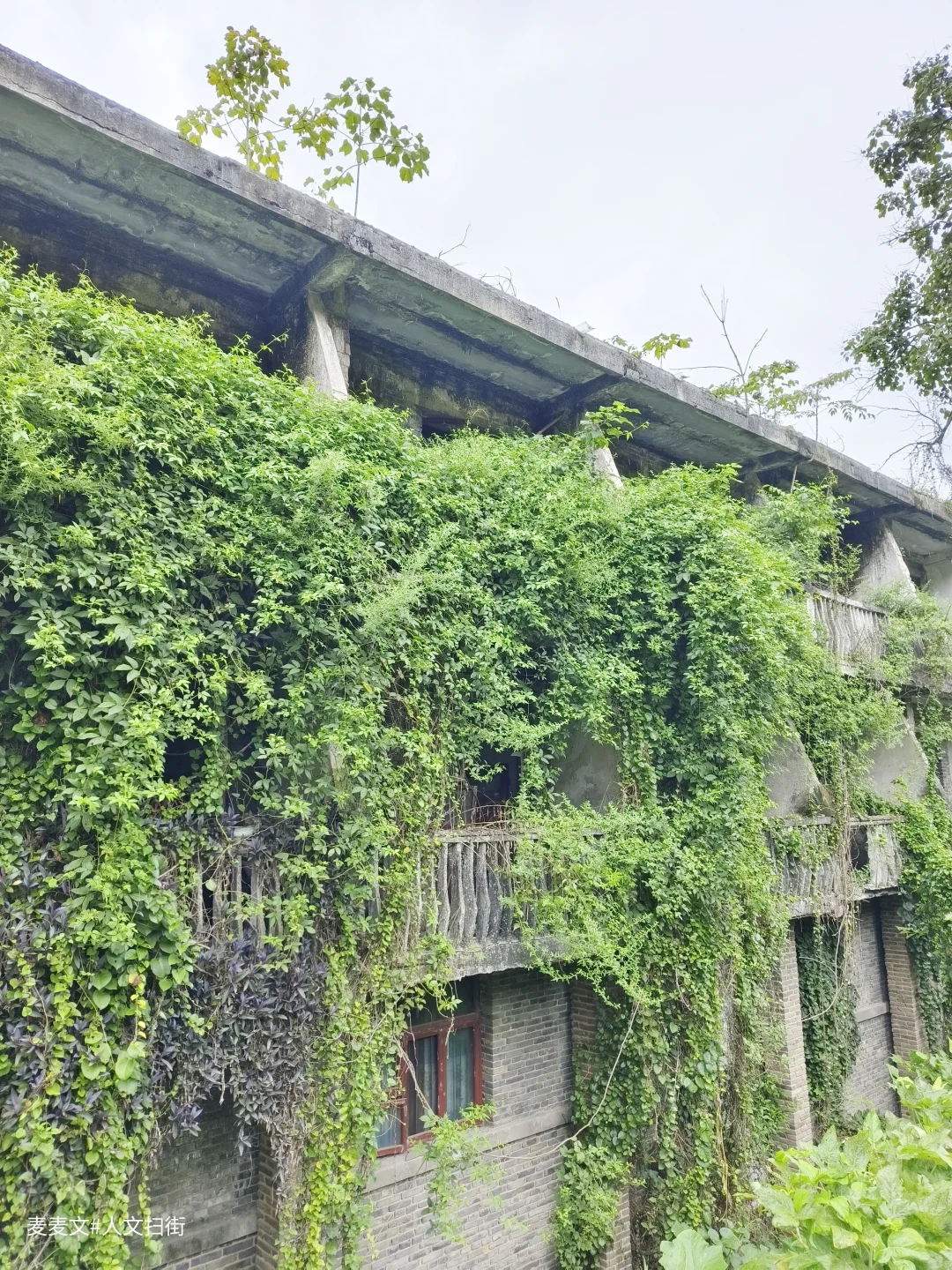 漫步重庆巴南一老街时撞见几栋废弃多年的青砖老房,砖石斑驳,墙体脱落,起初只觉岁月沧桑。可再定睛,那爬满建筑的藤蔓正肆意生长,绿意盎然。它们从墙根蜿蜒至楼顶,将破败的镂空阳台装点得别具风情。 曾经,这里或许热闹非凡,承载着无数生活片段。如今,人去楼空,自然悄然入驻。这看似矛盾的场景,却有着奇妙的和谐。老建筑的荒废是时光的馈赠,而植物的繁茂是对生命力量的礼赞。在这一方天地,过去与现在交织,诉说着独特的生命哲学。