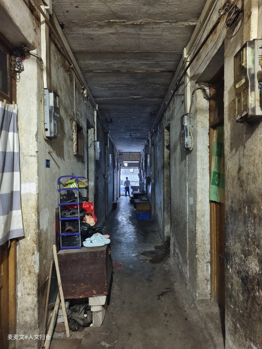 公共空间狭窄,过道仅容一两人通过。推开某户门,狭小屋内陈设简陋,旧木板床、掉漆柜子,满是岁月痕迹。窗户残破,塑料布勉强遮挡,阳光透进来,却驱不散潮湿与陈旧。