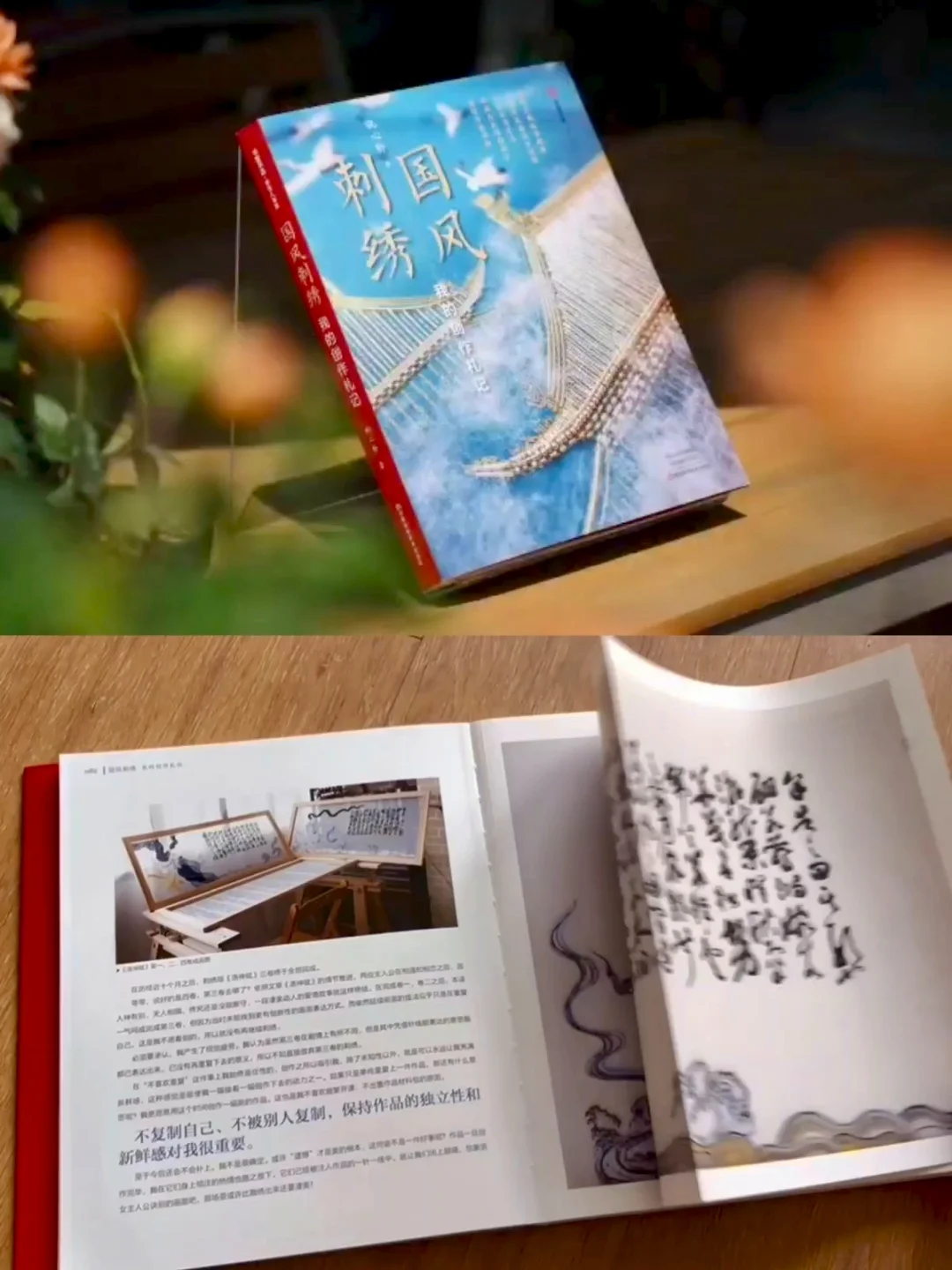 说回这本《国风刺绣》本身,祝心聆现场分享了书中精彩的内容,全书围绕“灵感”“创作”展开,从“艺术”“审美”角度看待刺绣,分享十年创作心得和方法,收录了近20件作品及创作全过程(包括平面图、细节图和过程图),传达“由技术转艺术”的理念,还包含她的创业历程和生活片段,展现其别样生活方式。