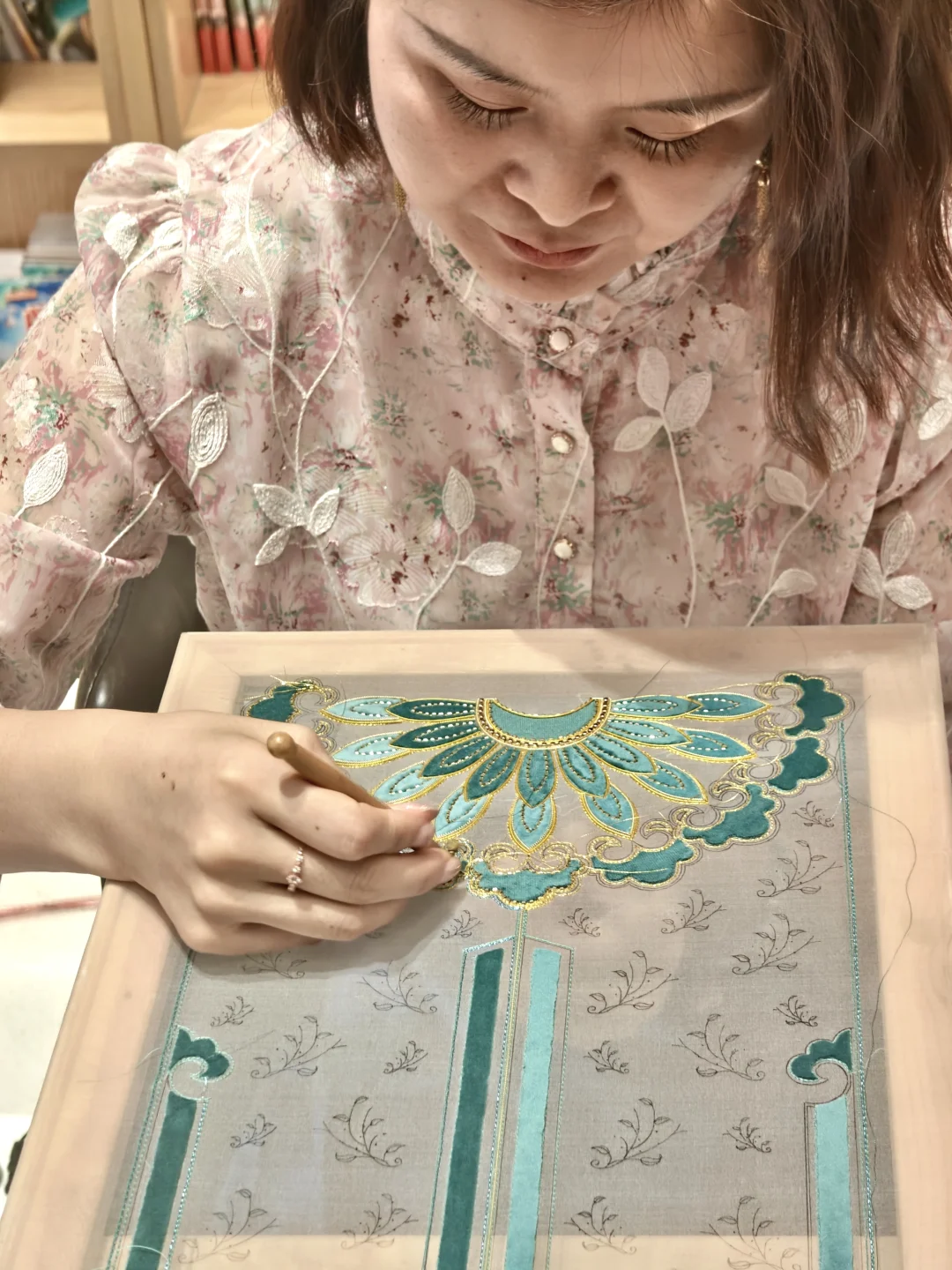 她说她特意选择在书城做分享会,就是想“破圈”,跳出刺绣圈子,让更多艺术爱好者能接触到“国风刺绣”的魅力,而不只是刺绣爱好者。这本书也确实不是一本传统的刺绣教程,而是一本创作思路和方法的著作。